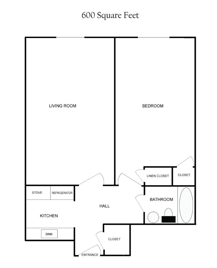 1 Dormitorio, 1 Baño, 600 pies²Galería del Modelo