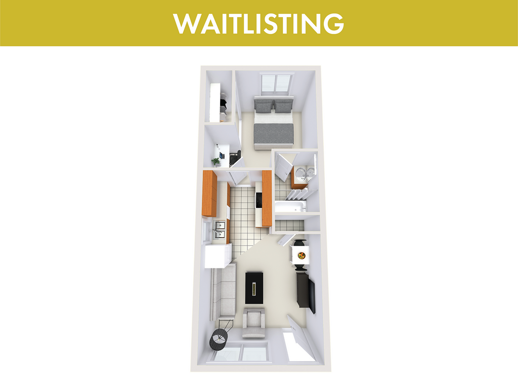 Modelo de apartamento: 1X1 FurnishedDesde $8751 Dormitorio, 1 Baño, 425 sq ftNo Disponible![]()