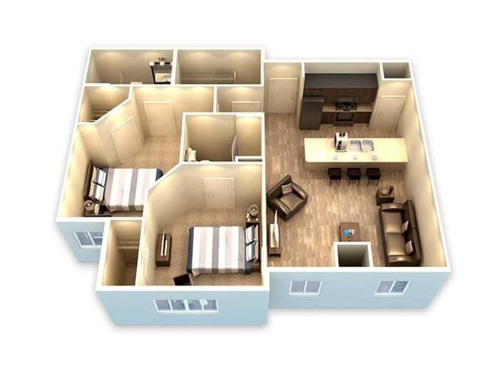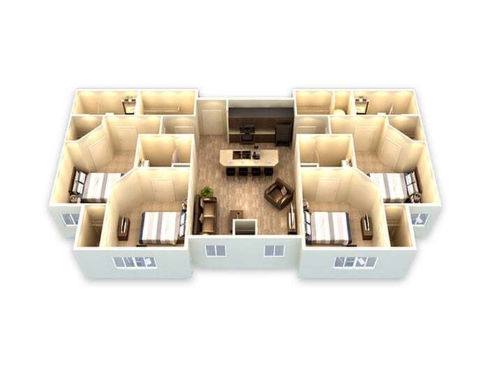 Modelo de apartamento: 4x2$5994 Dormitorios, 2 Baños, 396 sq ftDisponible August 18, 2026![]()