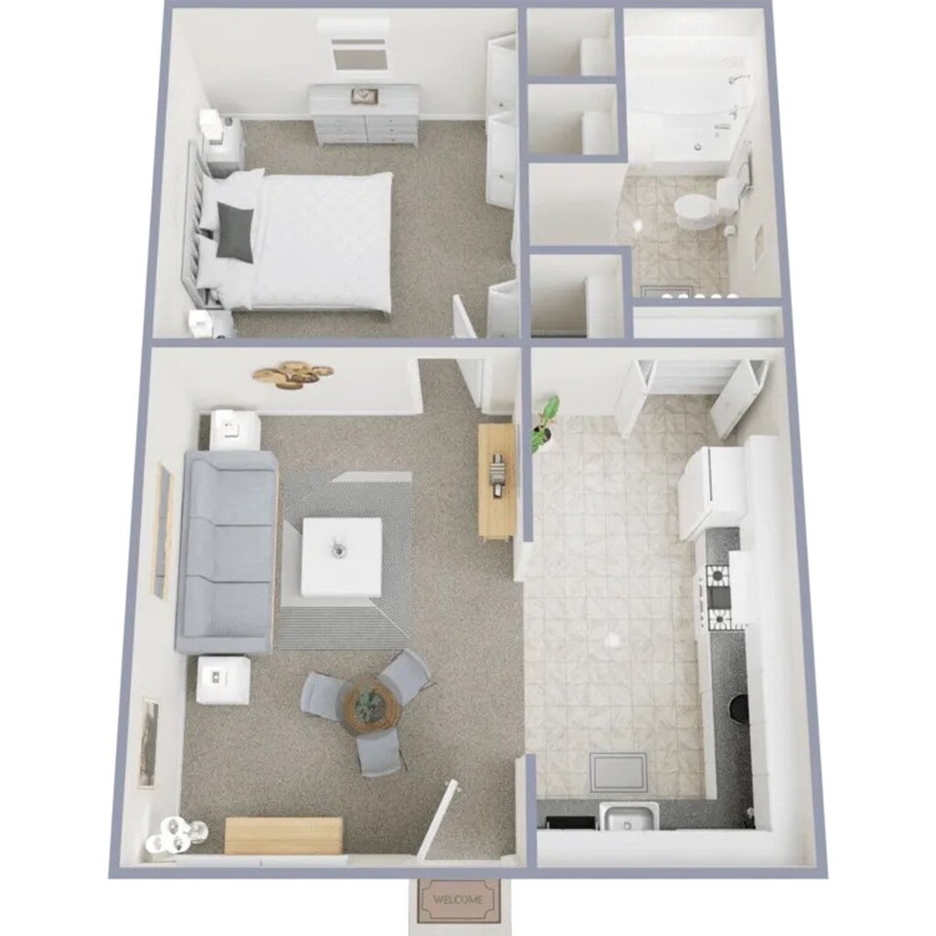 1 Dormitorio, 1 Baño, 615 pies²Disponible AhoraGalería del Modelo