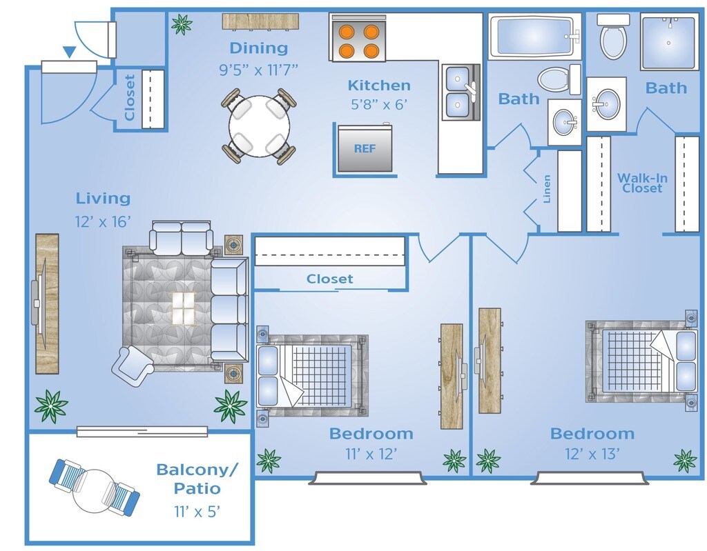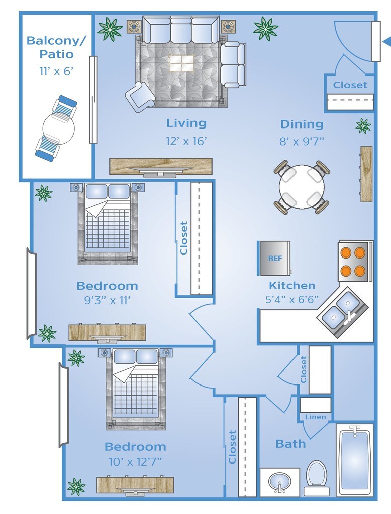 Modelo de apartamento: Creston PeakDesde $1,4752 Dormitorios, 2 Baños, 900 sq ftDisponible Ahora![]()