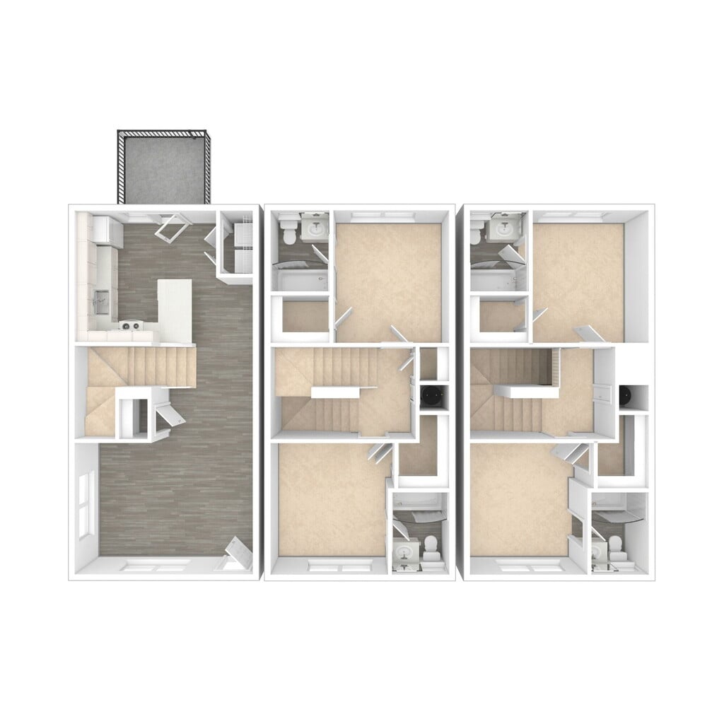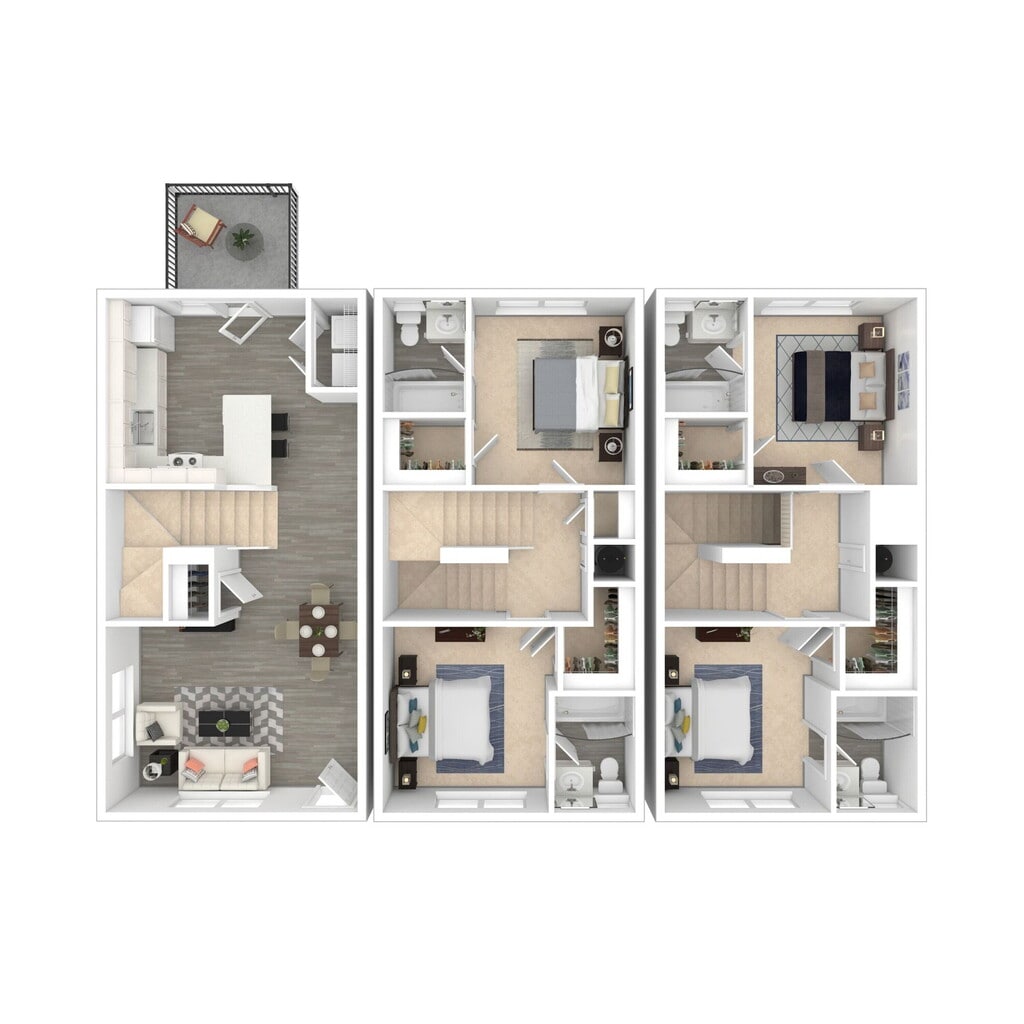 Modelo de apartamento: 4X4 Townhome$7094 Dormitorios, 4 Baños, 360 sq ftNo Disponible![]()