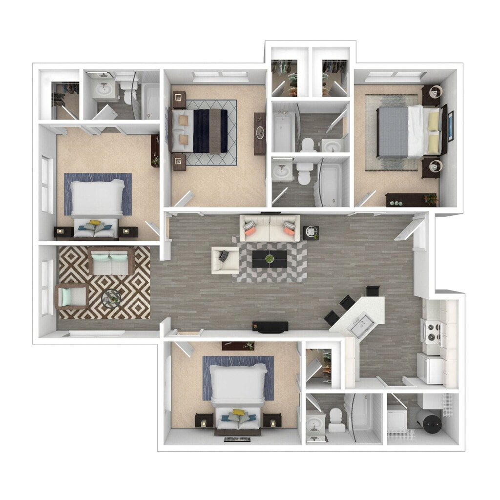 Modelo de apartamento: 4X4 Emerald Package$8144 Dormitorios, 4 Baños, 365 sq ftNo Disponible![]()