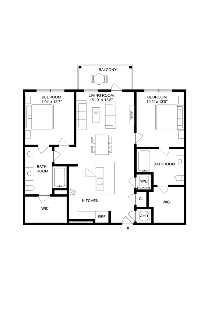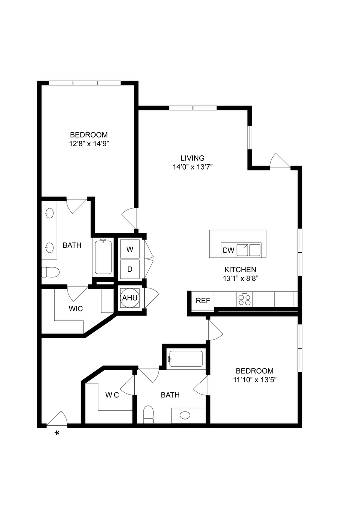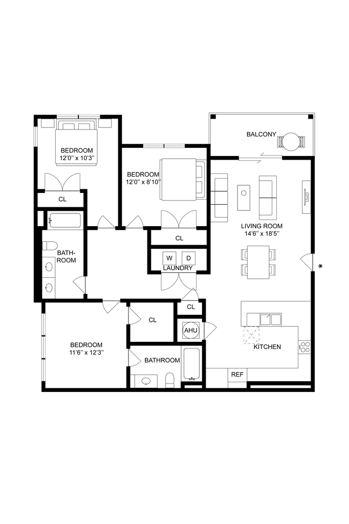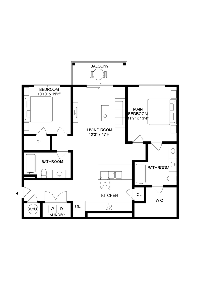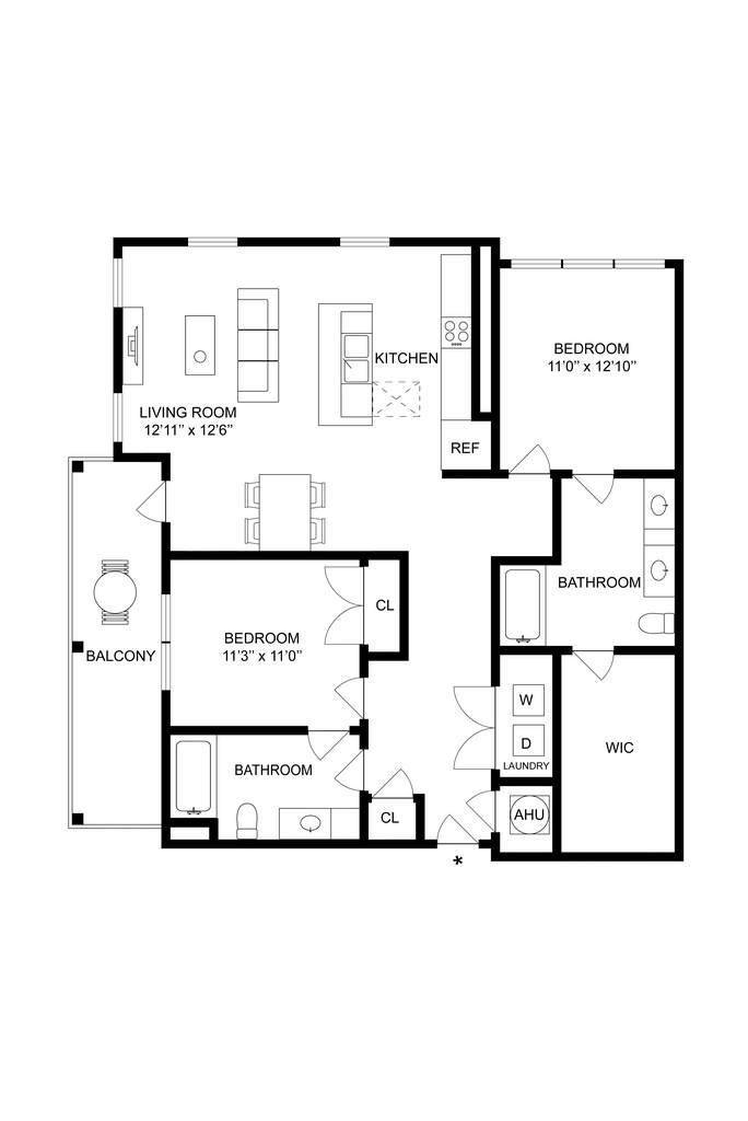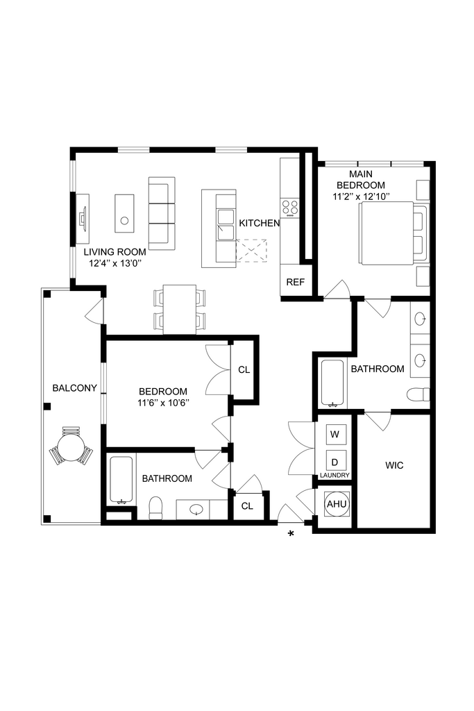 Modelo de apartamento: A2Desde $1,3741 Dormitorio, 1 Baño, 725 sq ftDisponible Ahora![]()