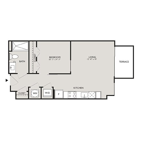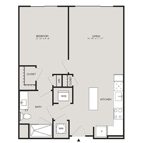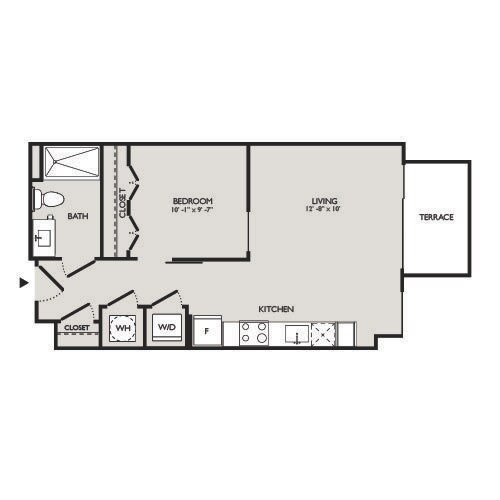 1 Dormitorio, 1 Baño, 520-527 pies²Disponible AhoraGalería del Modelo