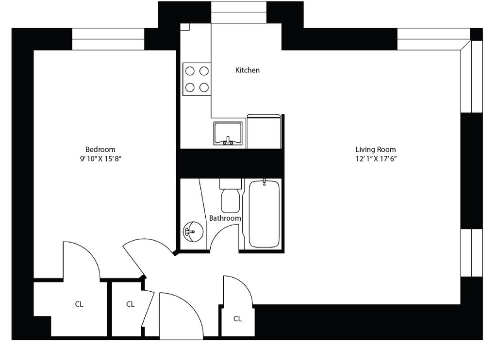 1 Dormitorio, 1 Baño, 533-575 pies²Disponible AhoraGalería del Modelo