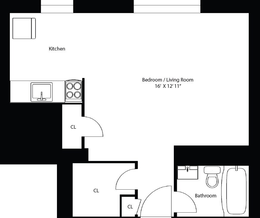 Estudio, 1 Baño, 385 pies²Disponible AhoraGalería del Modelo