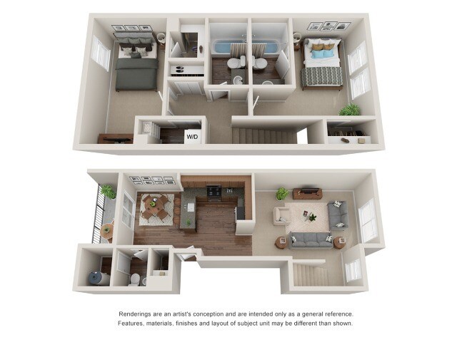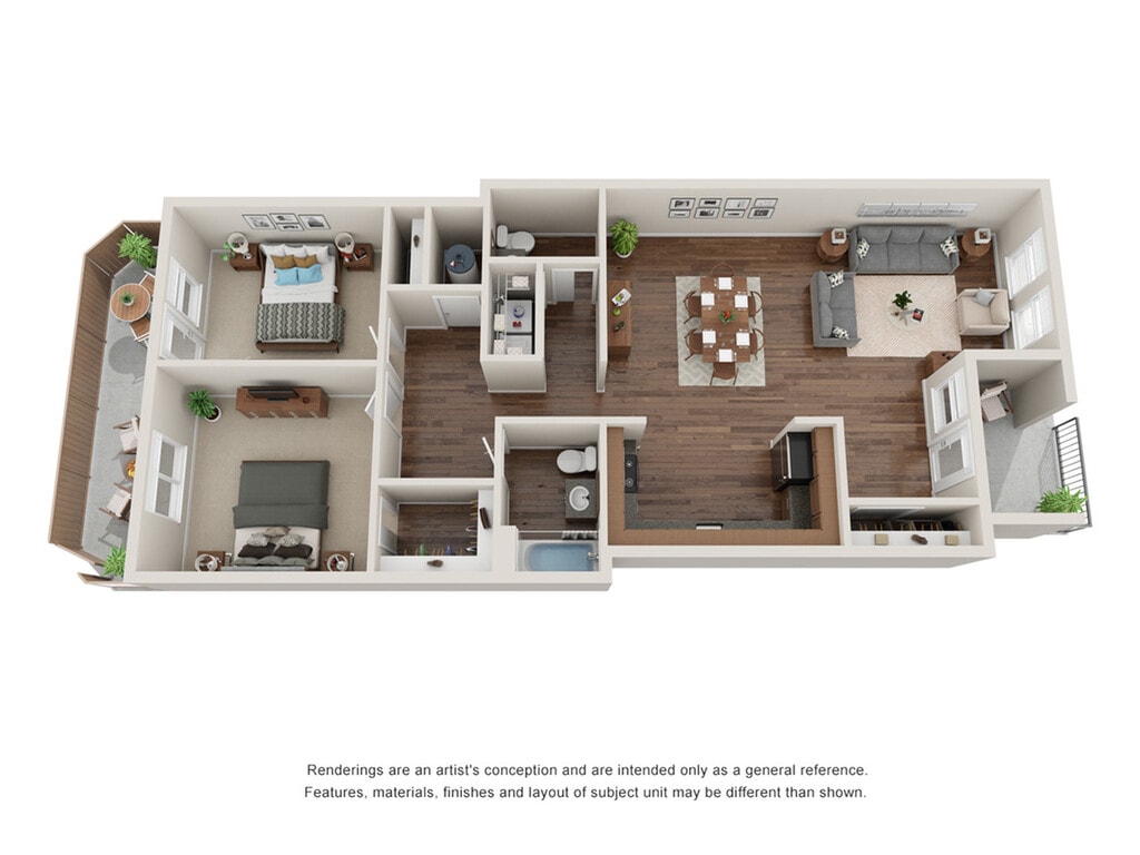 Modelo de apartamento: Unit EDesde $2,0981 Dormitorio, 1.5 Baños, 968 sq ftDisponible Ahora![]()