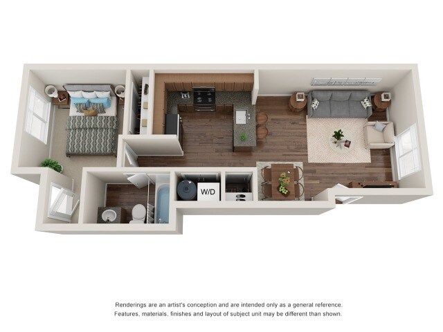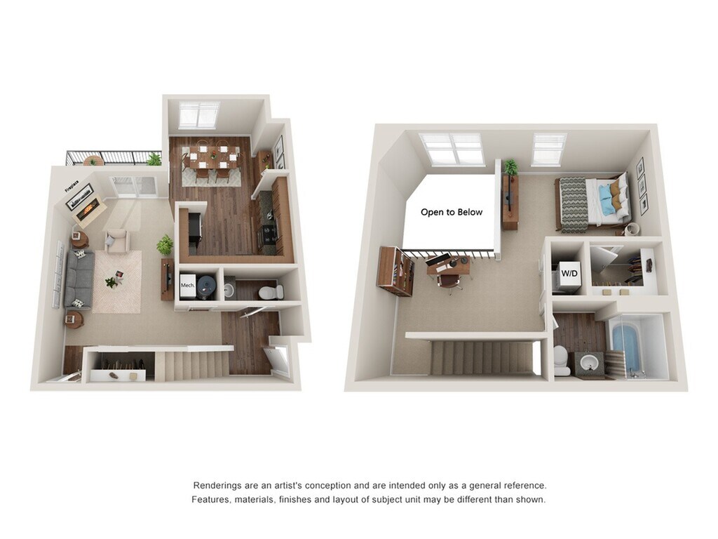 1 Dormitorio, 1 Baño, 619 pies²Disponible AhoraGalería del Modelo