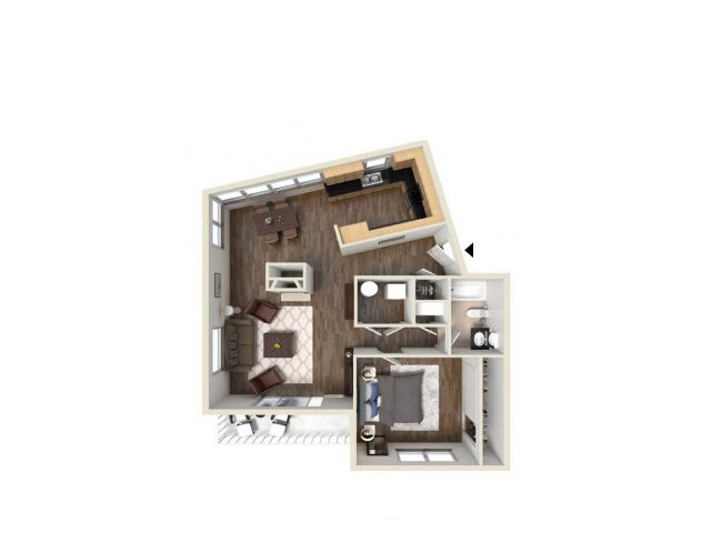 Modelo de apartamento: Unit MDesde $1,7131 Dormitorio, 1 Baño, 619 sq ftDisponible Ahora![]()