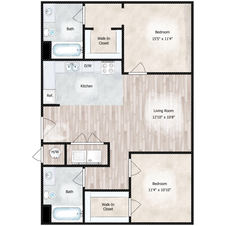 2 Dormitorios, 1 Baño, 850-901 pies²Disponible AhoraGalería del Modelo