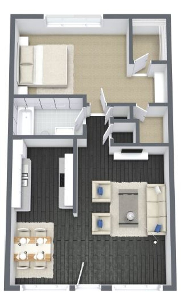 1 Dormitorio, 1 Baño, 750 pies²Disponible AhoraGalería del Modelo