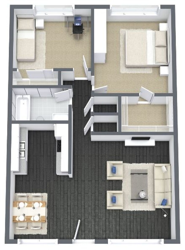 2 Dormitorios, 1 Baño, 950 pies²Disponible AhoraGalería del Modelo