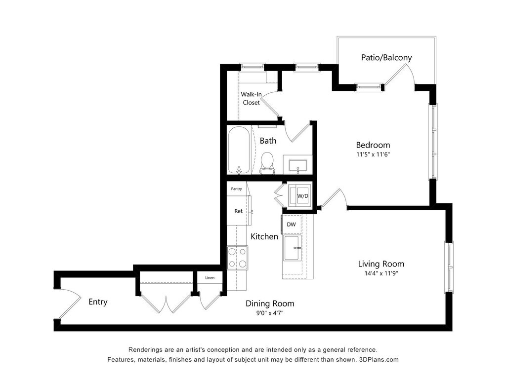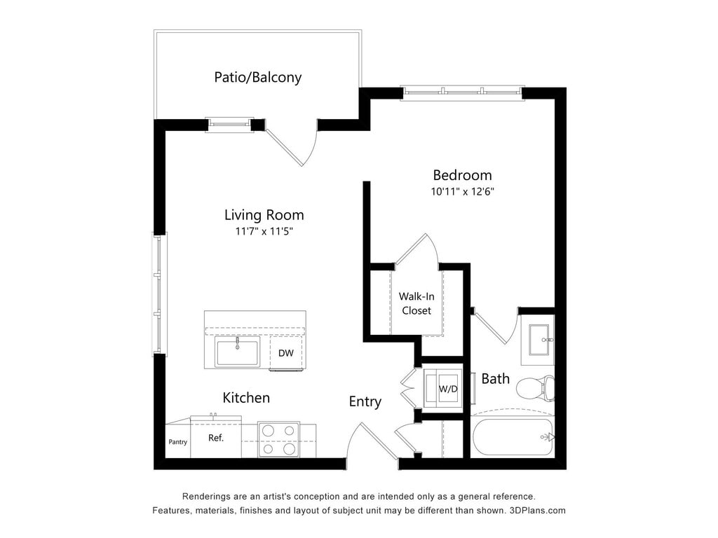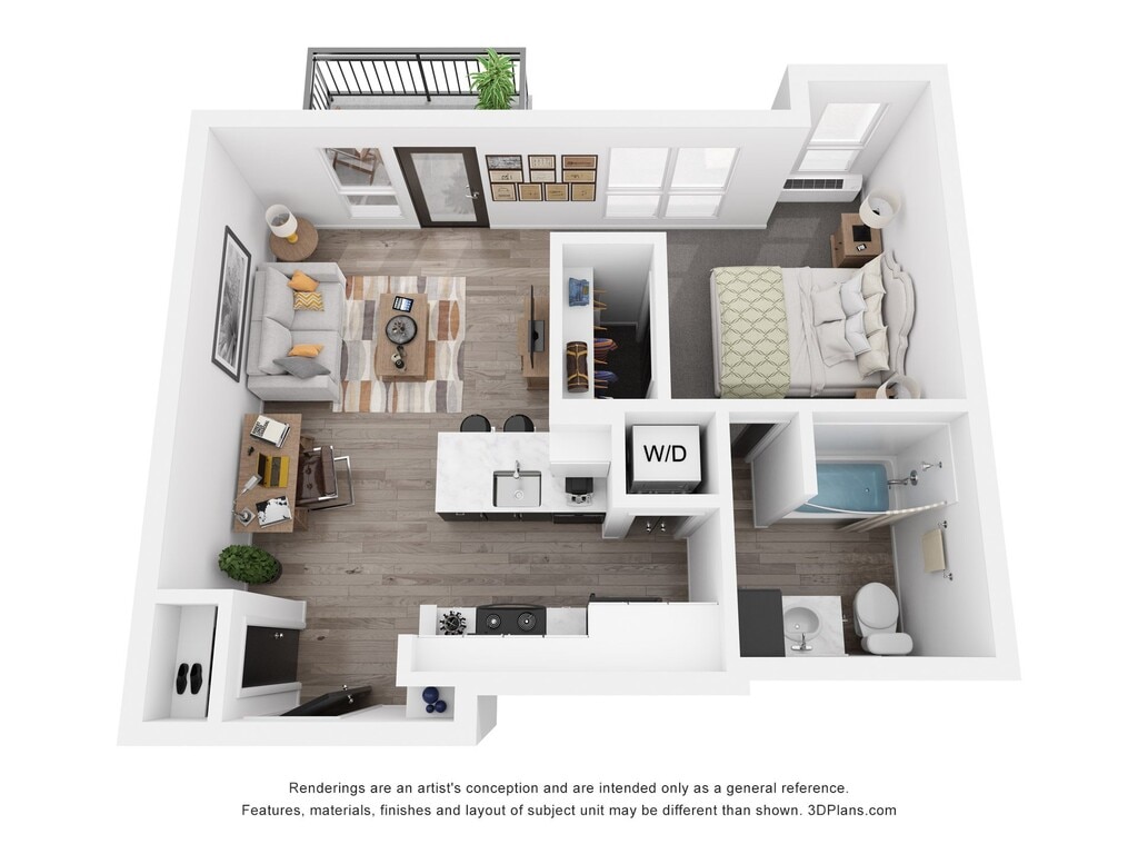 Estudio, 1 Baño, 523 pies²Galería del Modelo