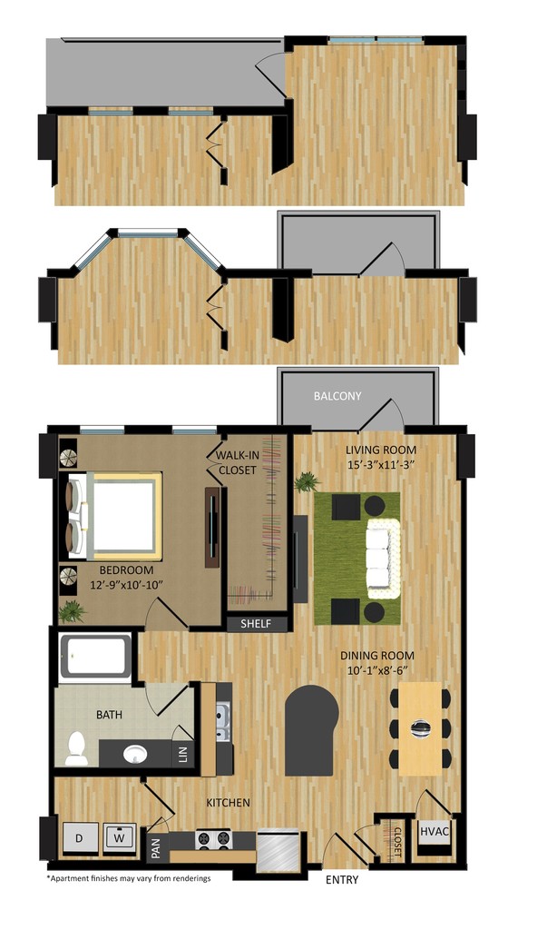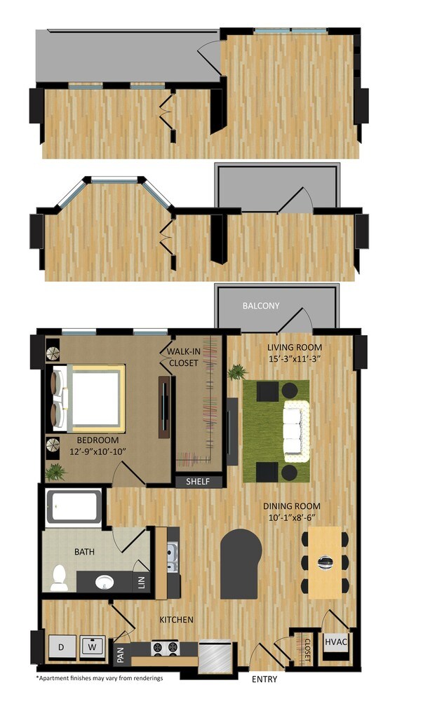 Estudio, 1 Baño, 577 pies²Galería del Modelo