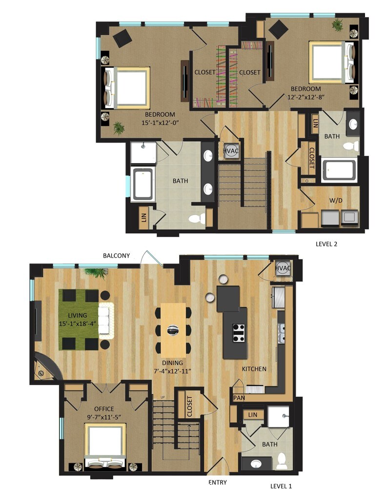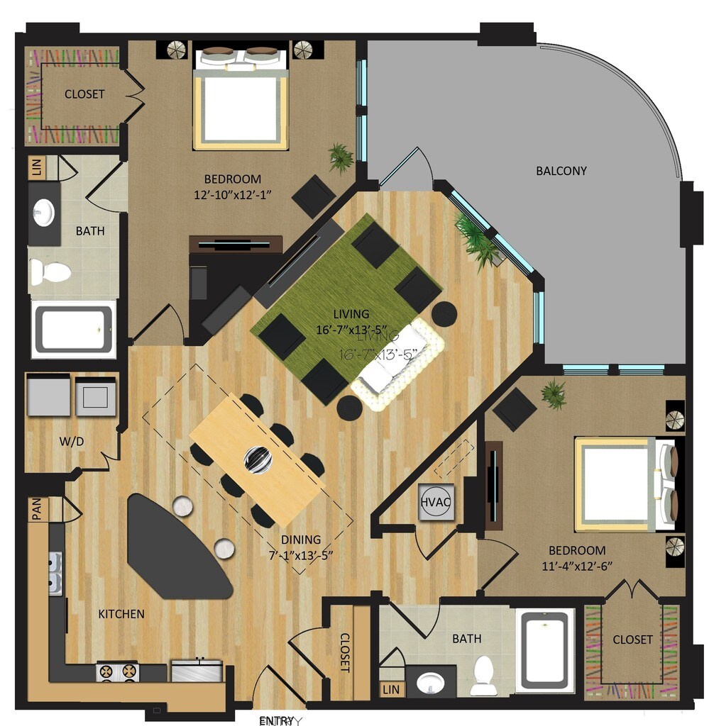 Modelo de apartamento: A2BDesde $2,1381 Dormitorio, 1 Baño, 762 sq ftDisponible December 23, 2025![]()