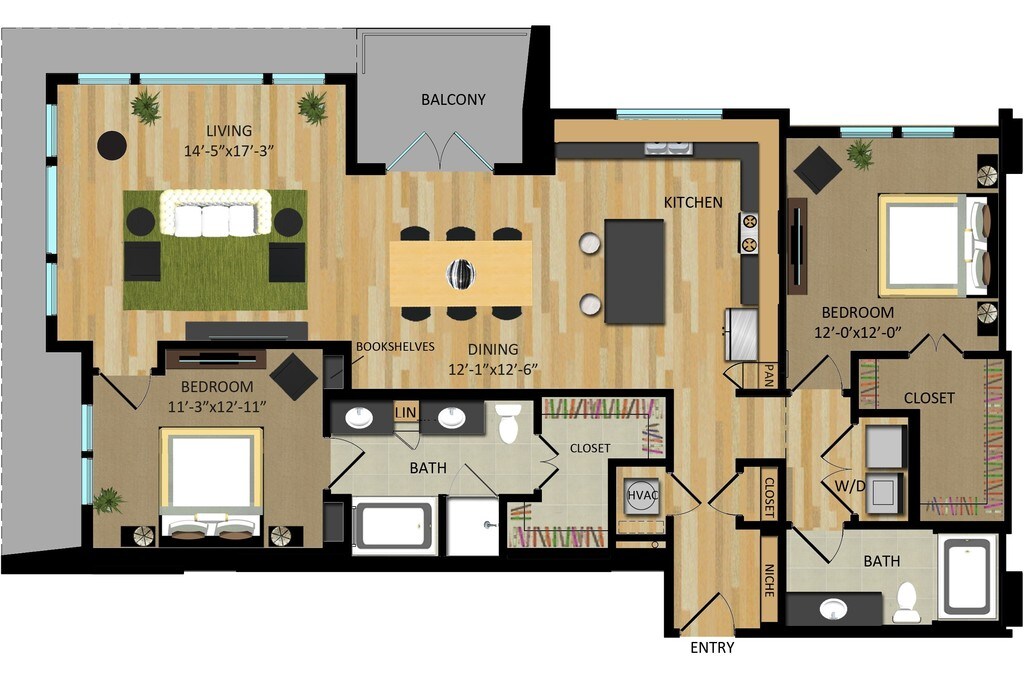 Modelo de apartamento: A2CDesde $2,0931 Dormitorio, 1 Baño, 792 sq ftDisponible December 5, 2025PlanosFotos![]()