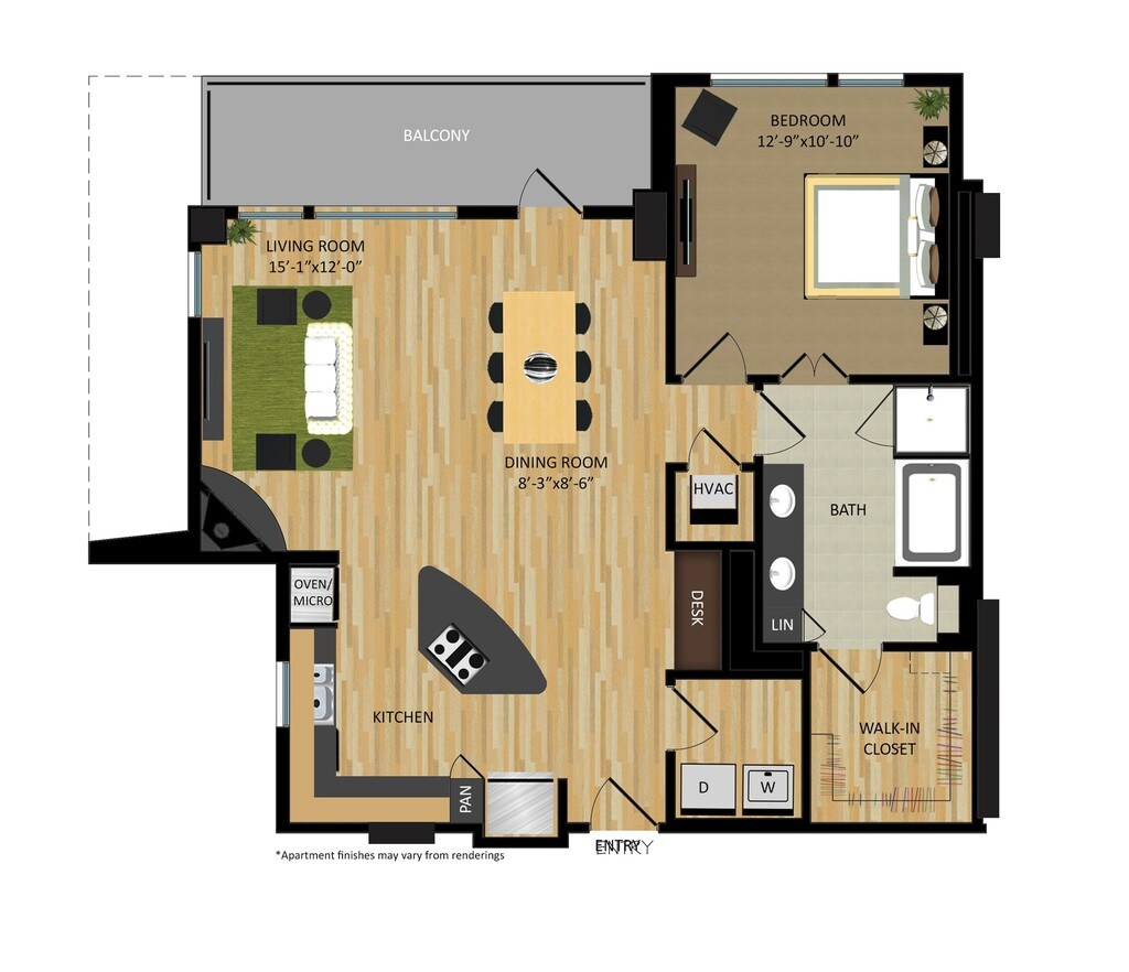 1 Dormitorio, 1 Baño, 792 pies²Disponible Dec 5Galería del Modelo