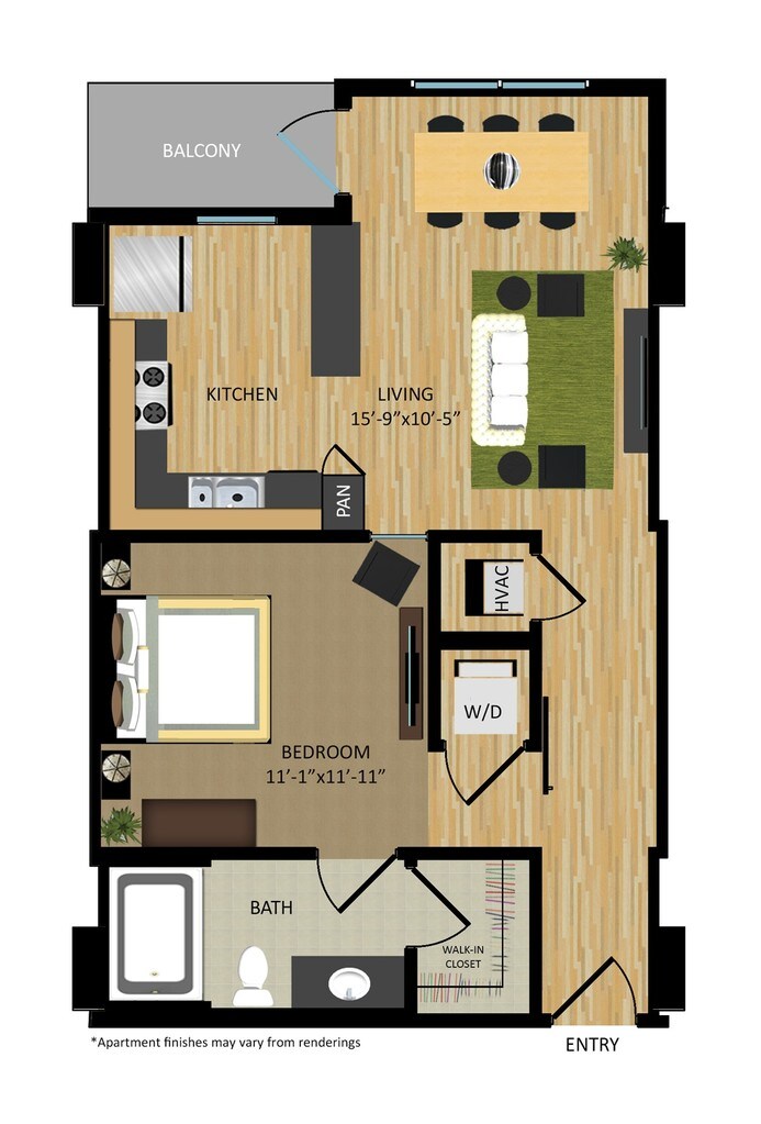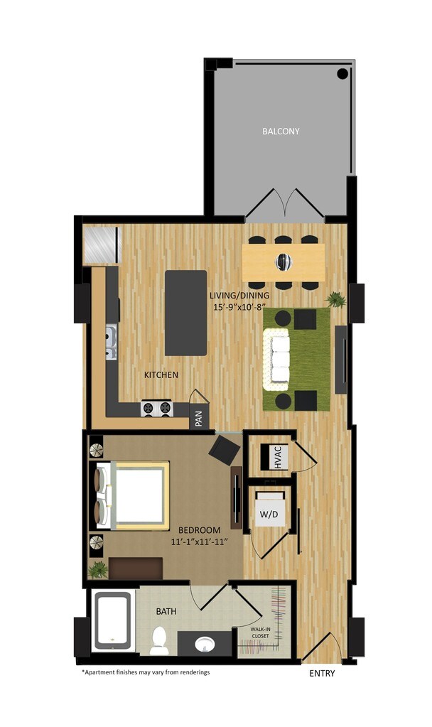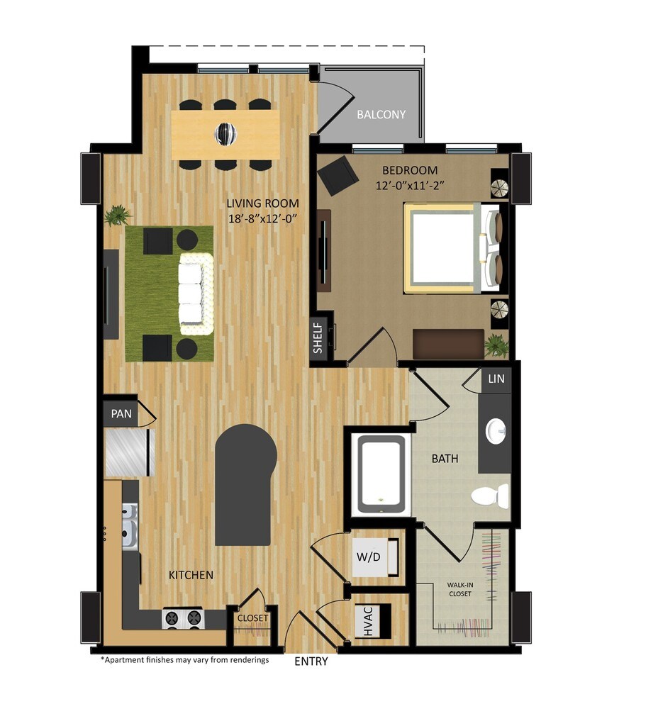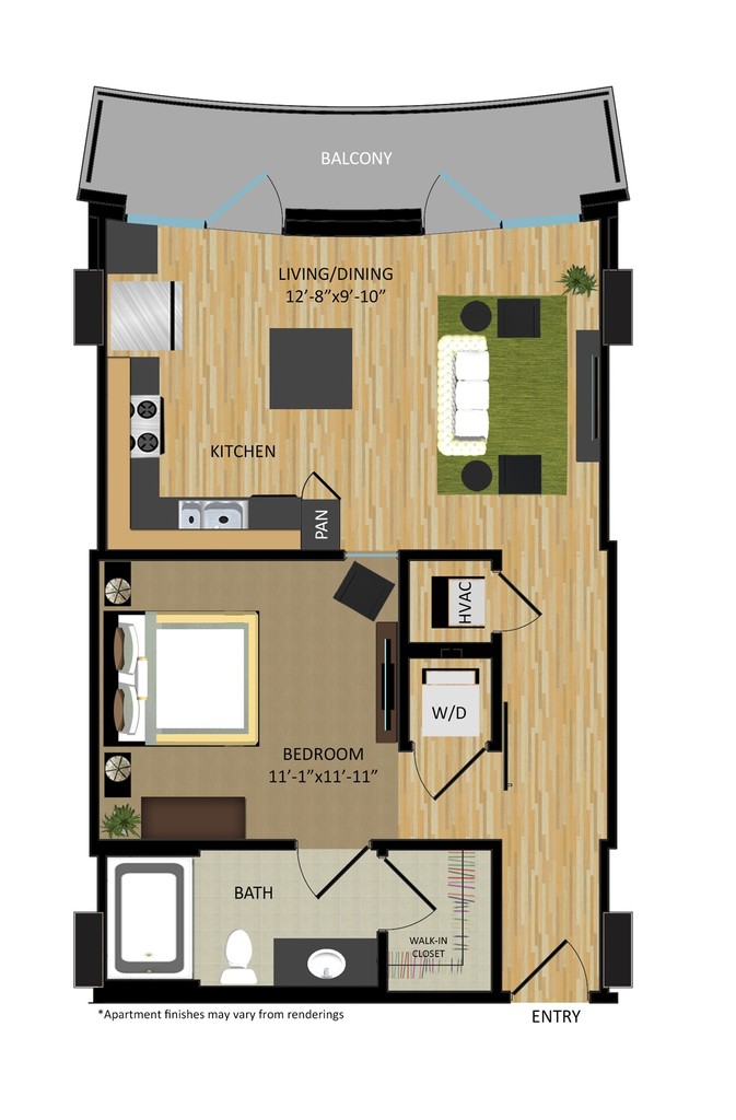 Modelo de apartamento: S1ALlame para PreciosEstudio, 1 Baño, 577 sq ftNo Disponible![]()