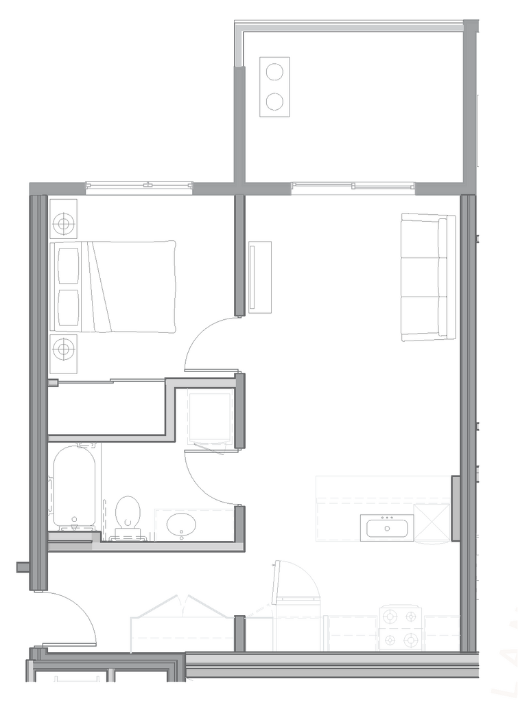 Estudio, 1 Baño, 550 pies²Galería del Modelo