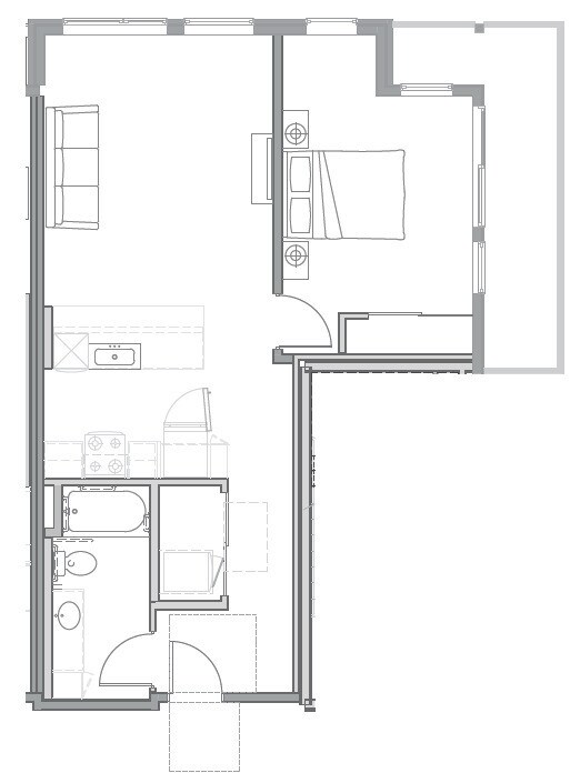 1 Dormitorio, 1 Baño, 603-733 pies²Galería del Modelo