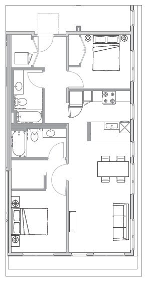 Elegantes y sofisticados apartamentos de 1 habitación, 2 habitaciones y opciones de casas adosadas, todos diseñados con un estilo moderno y una comodidad atemporal en mente.