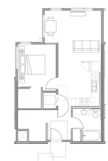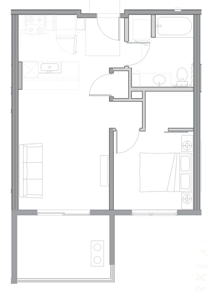 Estudio, 1 Baño, 579-624 pies²Disponible Nov 5El más grandeEsta opción tiene las unidades más grandes para este modeloGalería del Modelo