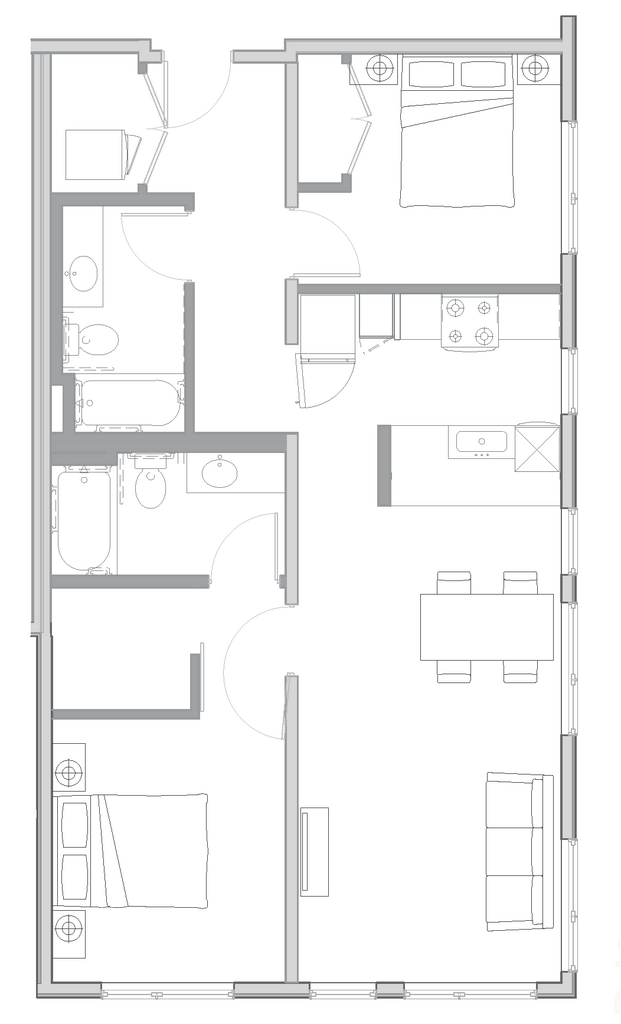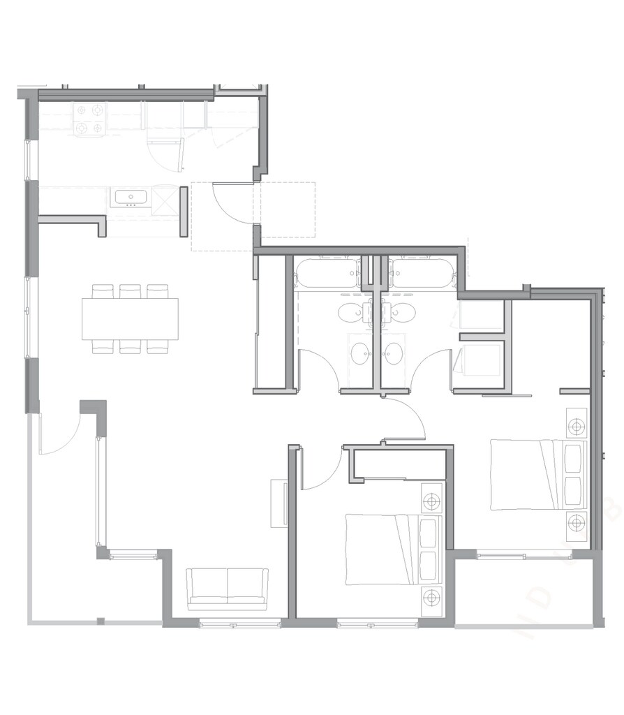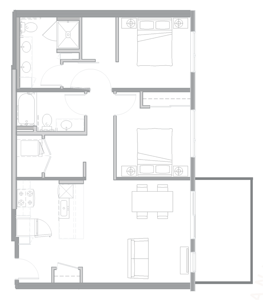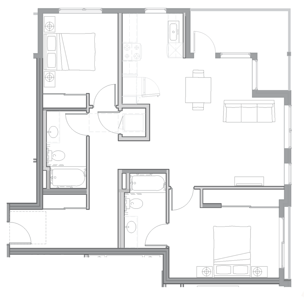 1 Dormitorio, 1 Baño, 758 pies²Disponible AhoraGalería del Modelo
