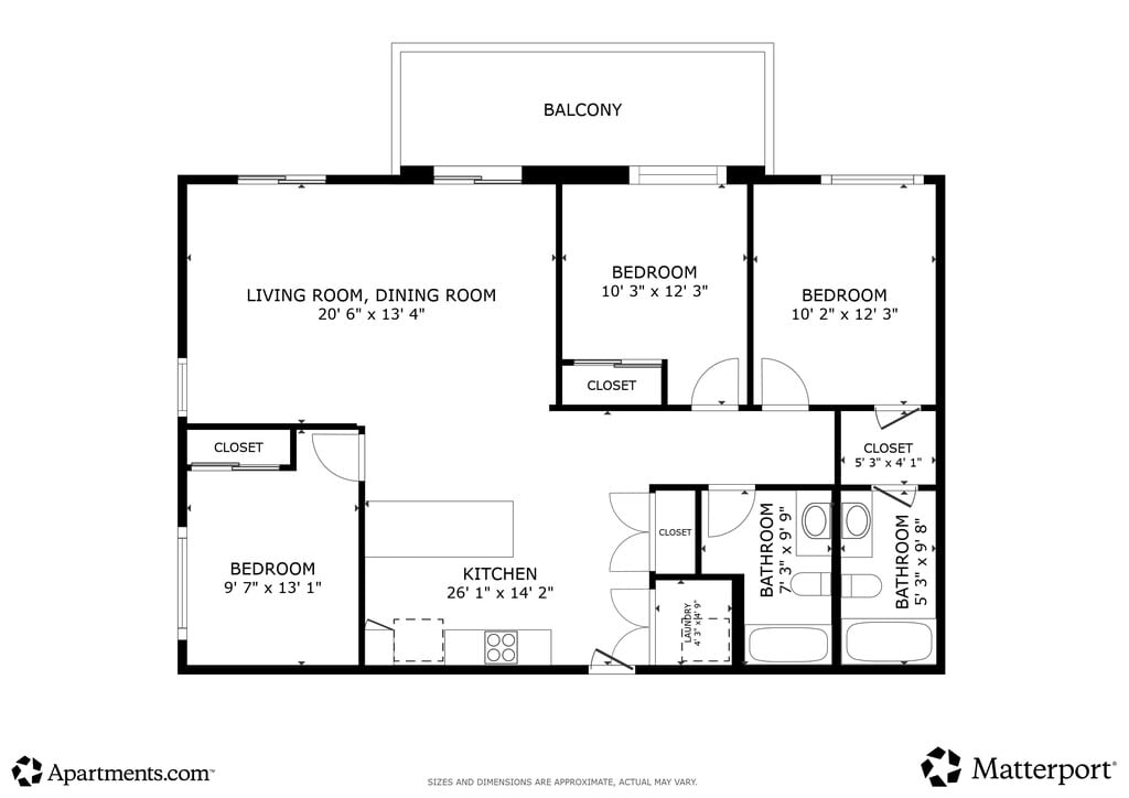 3 Dormitorios, 2 Baños, 1000-1398 pies²Disponible AhoraDetalles de Diponibilidad