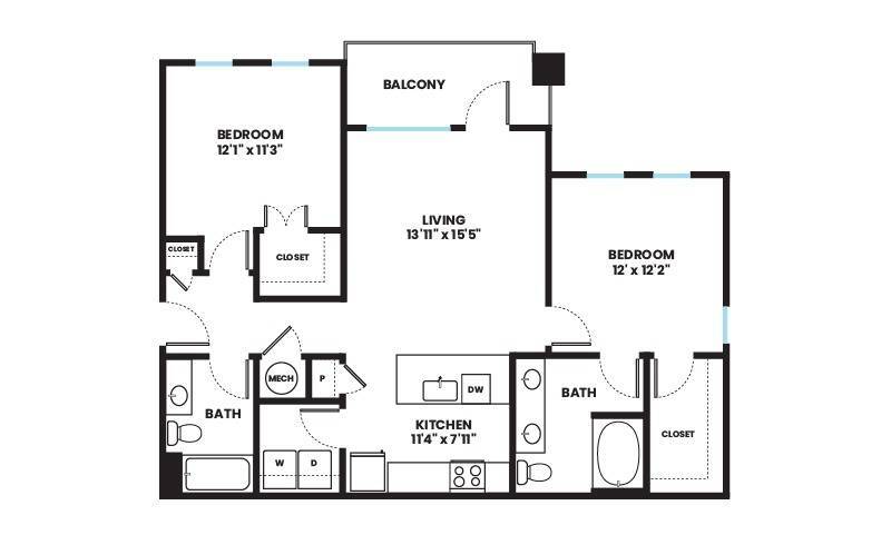 Modelo de apartamento: Core$1,2251 Dormitorio, 1 Baño, 656 sq ftNo Disponible![]()