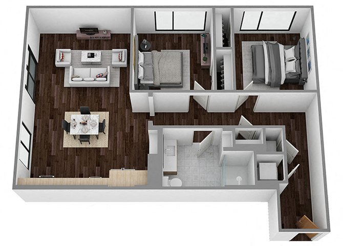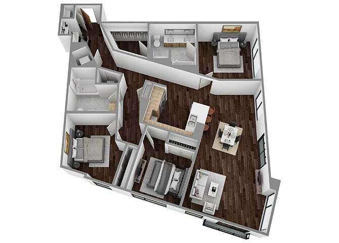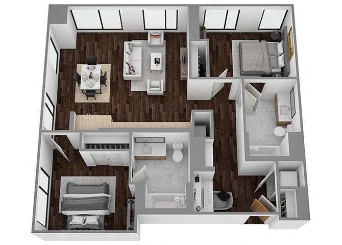 Estudio, 1 Baño, 558-565 pies²Precio Mensual TotalDisponible AhoraEl más grandeEsta opción tiene las unidades más grandes para este modeloGalería del Modelo