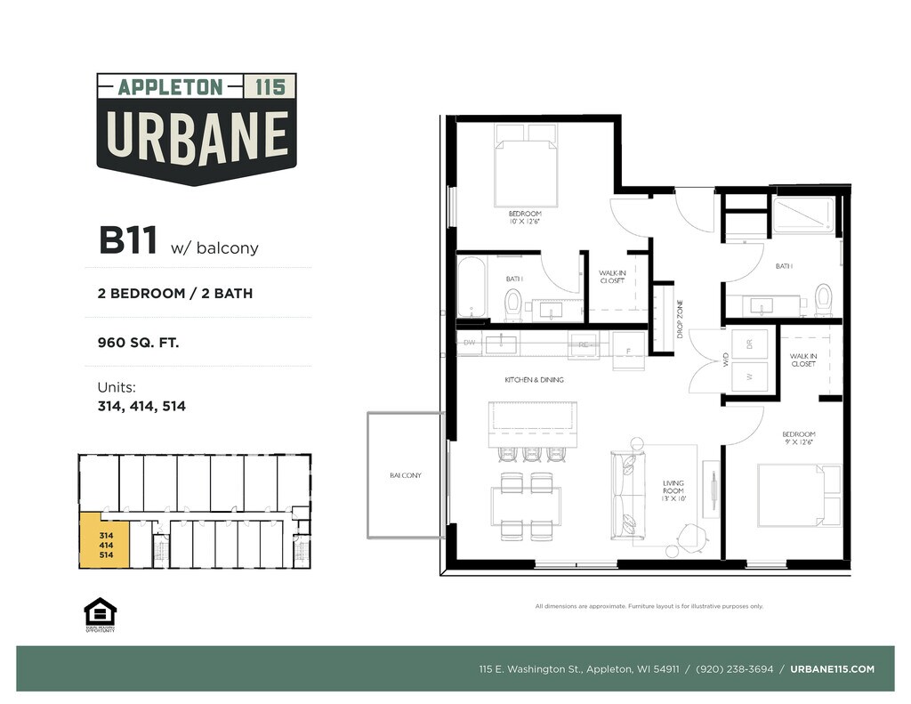 Urbane115 Apartments se encuentra en el Barrio Downtown Appleton y el código postal 54911 de Appleton, WI. Esta comunidad está gestionada profesionalmente por Diverge LLC