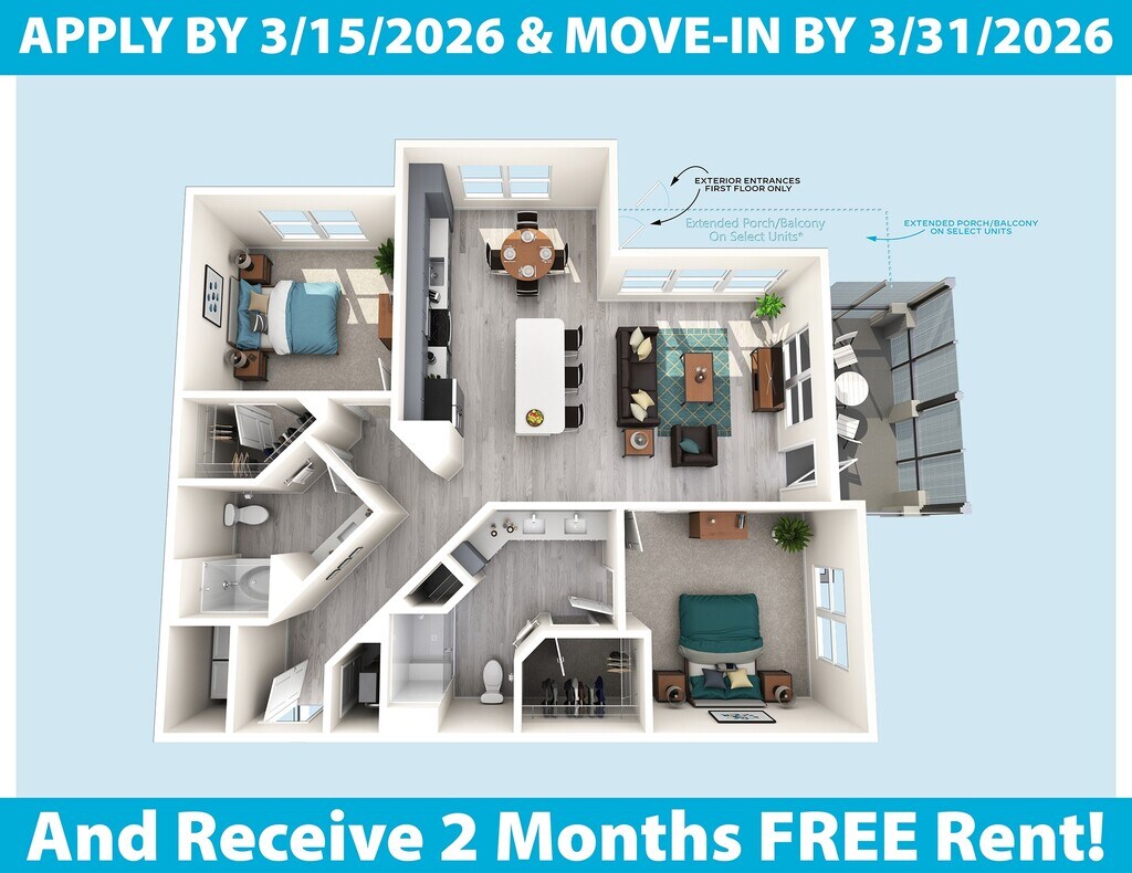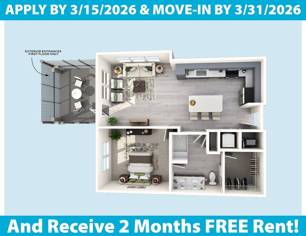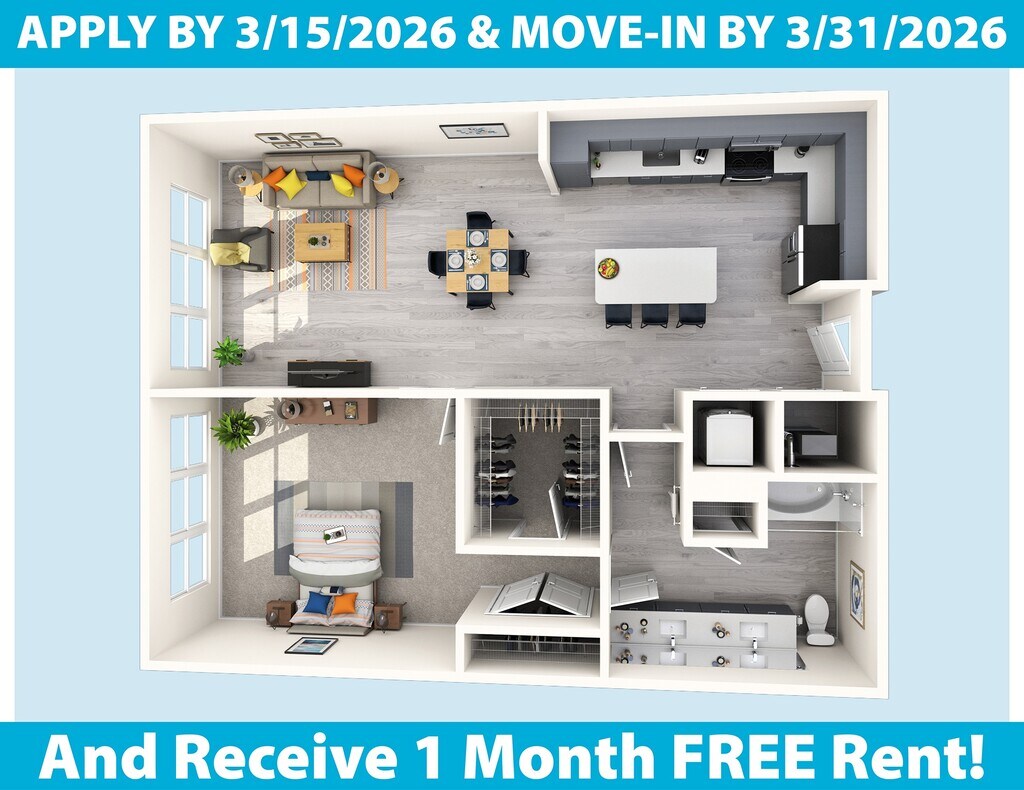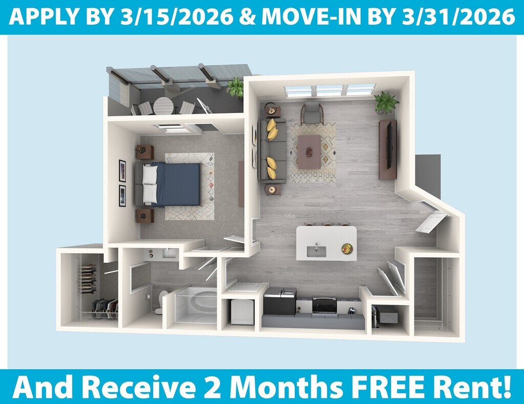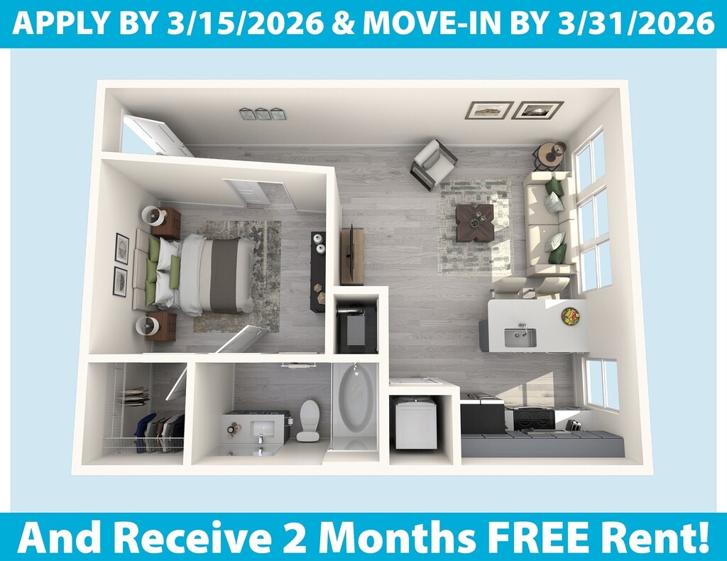 Estudio, 1 Baño, 697-707 pies²Disponible AhoraGalería del Modelo