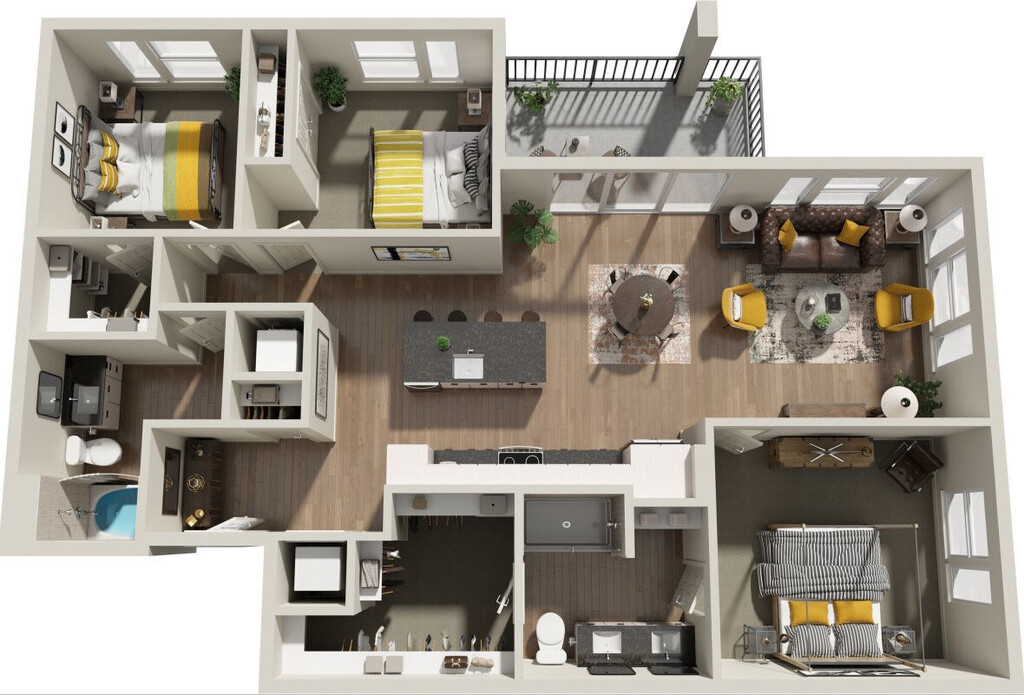 Modelo de apartamento: A3Desde $1,6301 Dormitorio, 1 Baño, 836 sq ftDisponible Ahora![]()