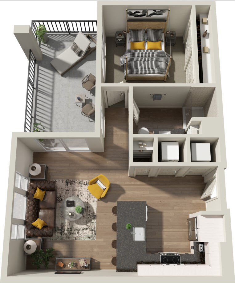 1 Dormitorio, 1 Baño, 738 pies²Disponible AhoraGalería del Modelo