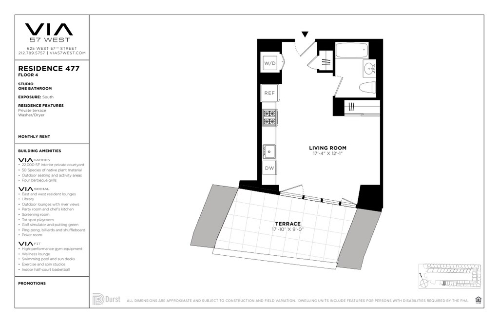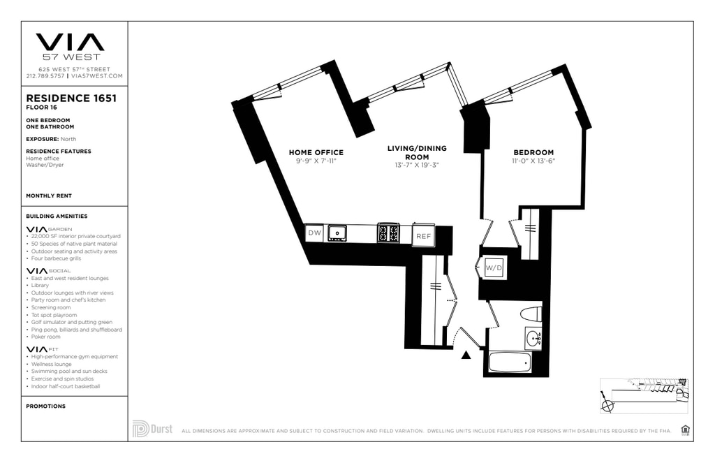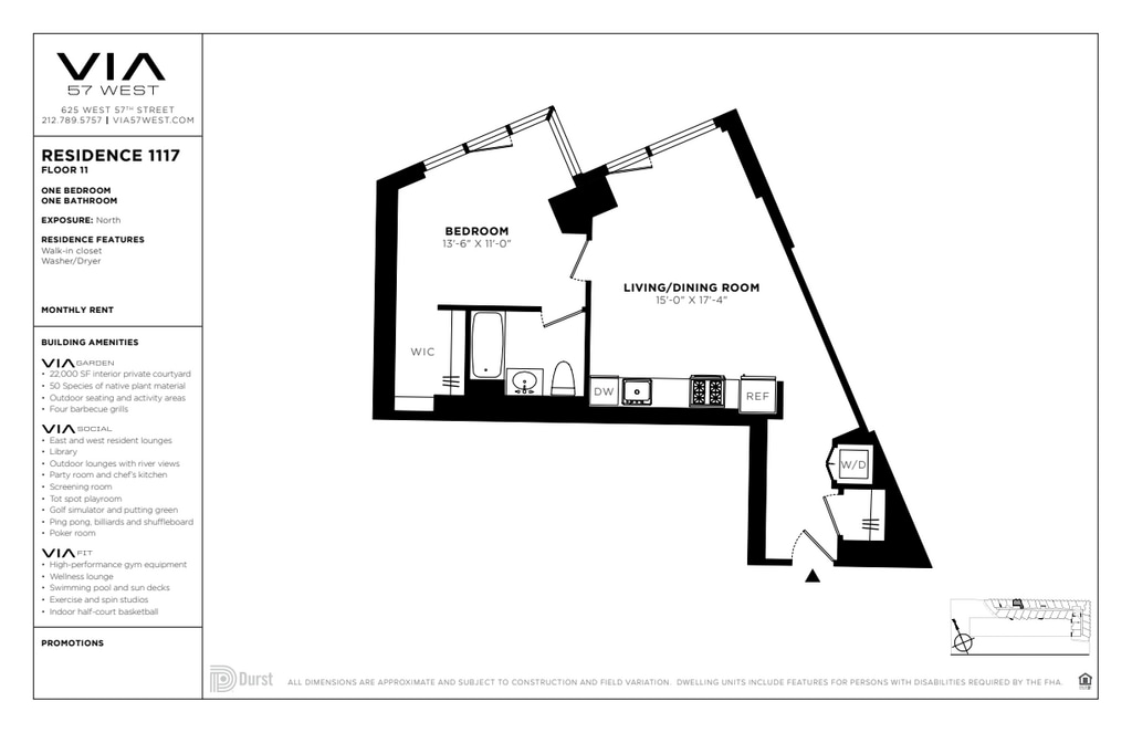 VIA 57 WEST se encuentra en el Barrio Hell's Kitchen y el código postal 10019 de New York, NY. Esta comunidad está gestionada profesionalmente por The Durst Organization