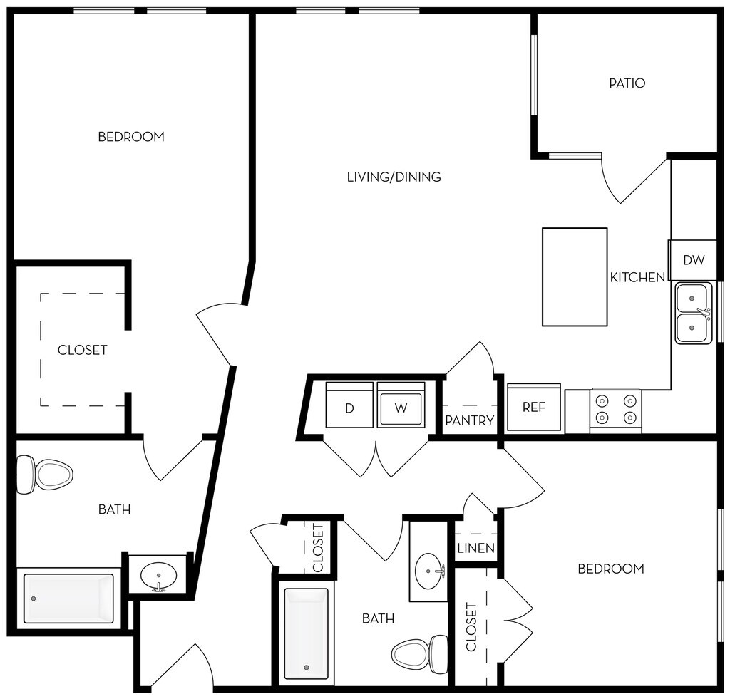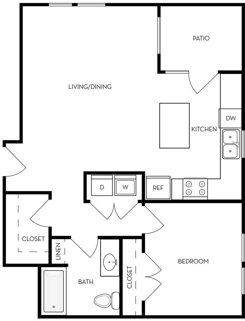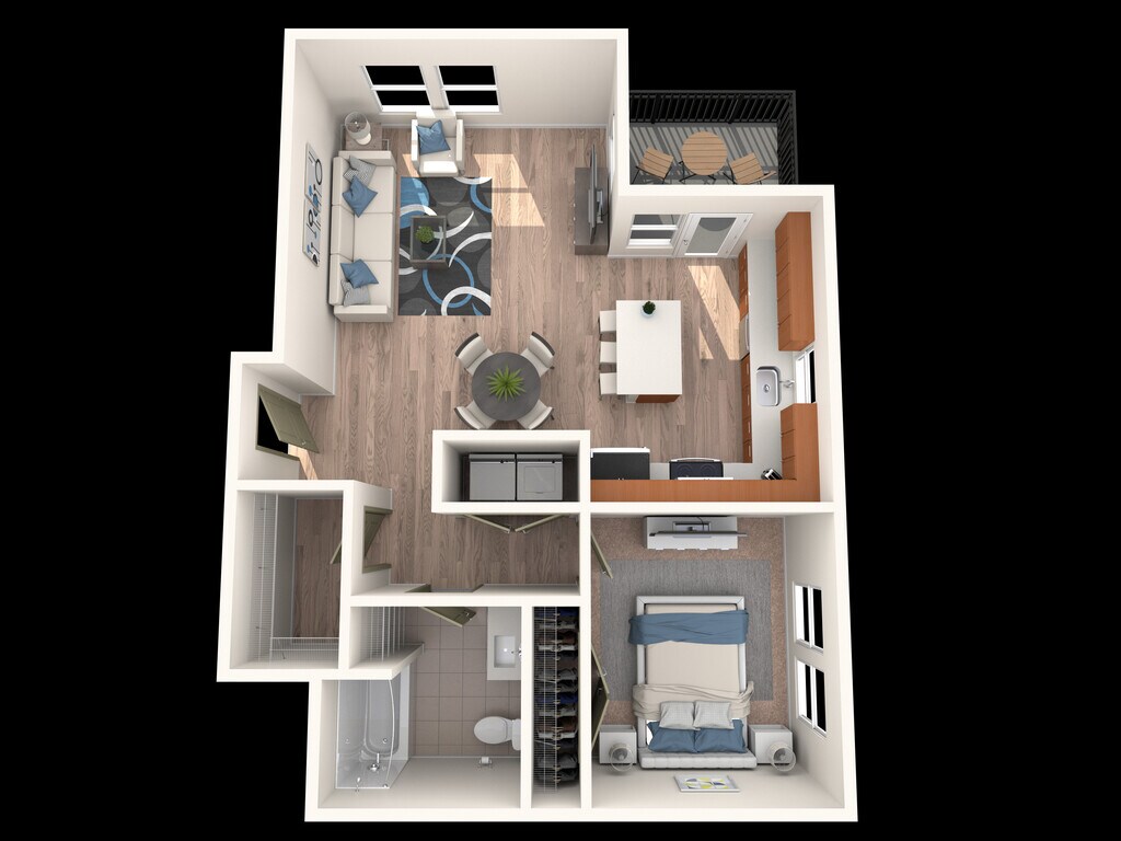 1 Dormitorio, 1 Baño, 812 pies²El más grandeEsta opción tiene las unidades más grandes para este modeloGalería del Modelo