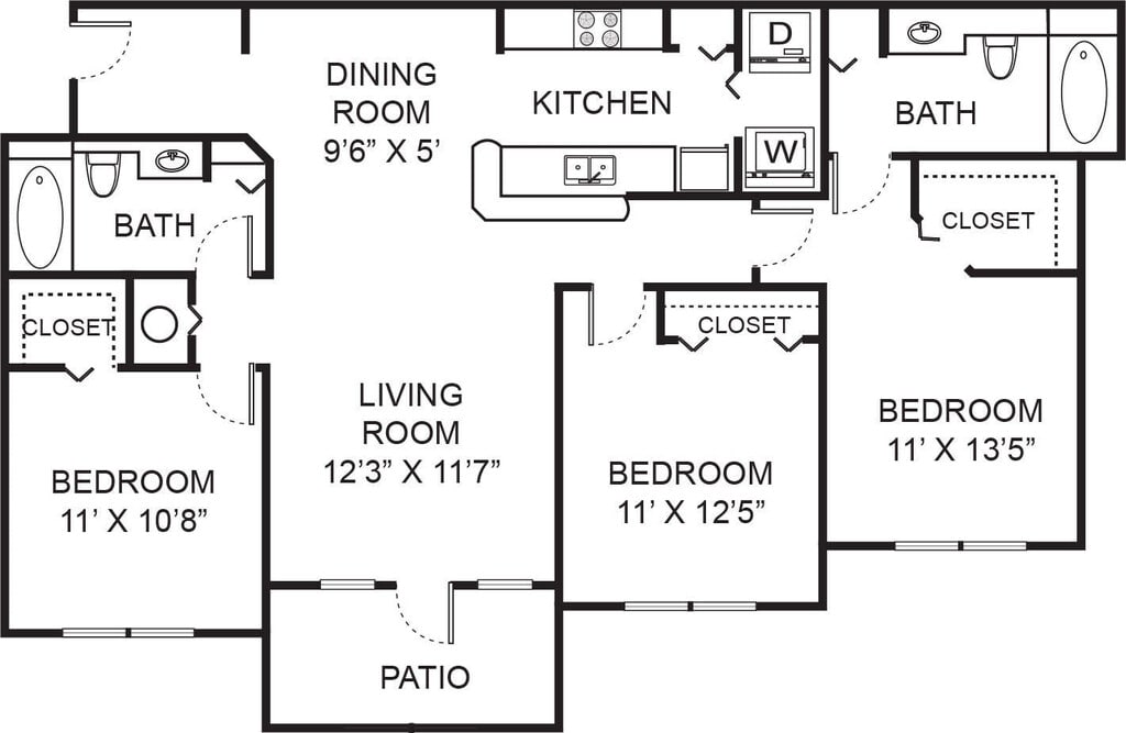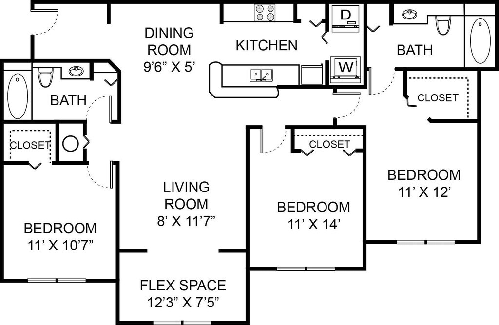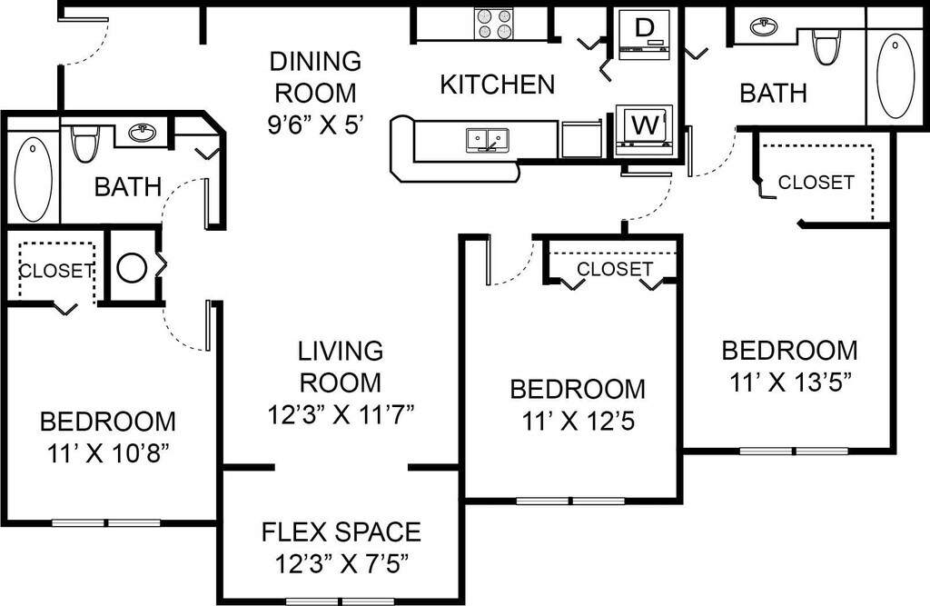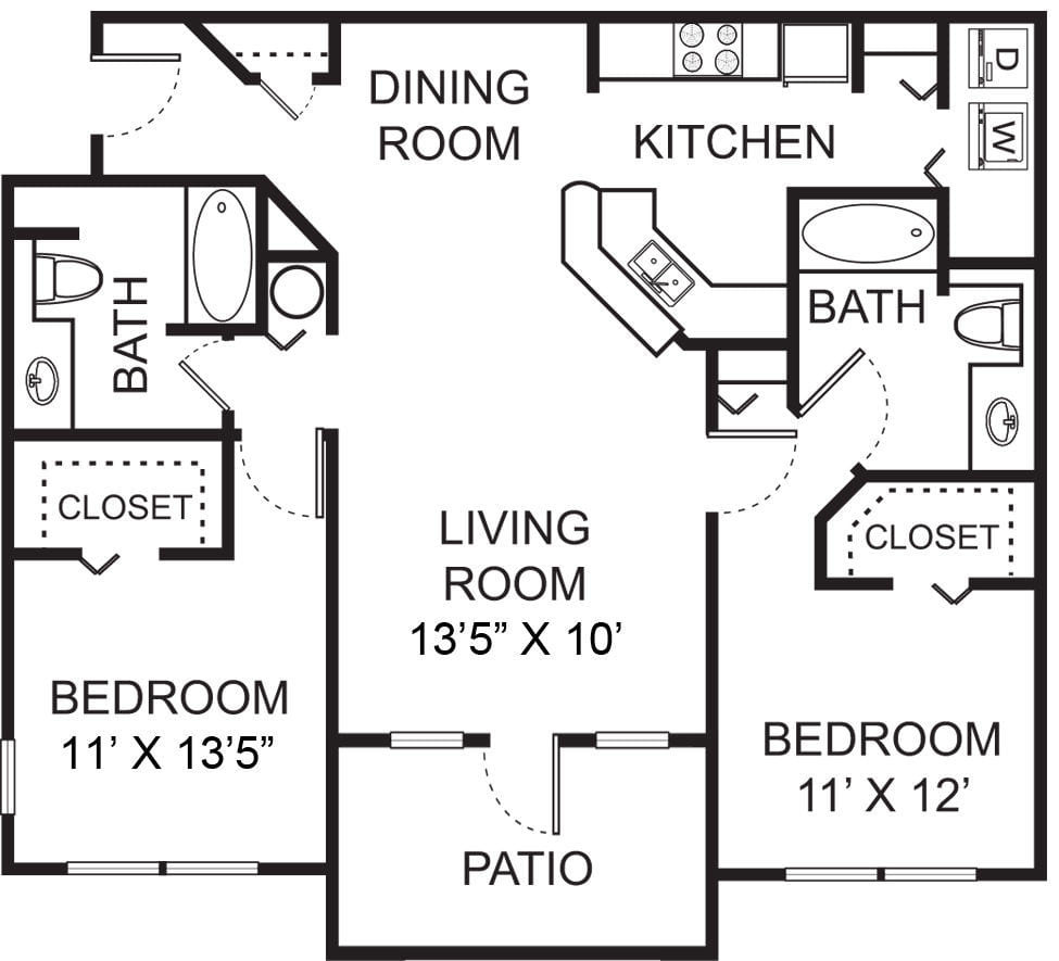 Modelo de apartamento: B2Desde $2,2042 Dormitorios, 2 Baños, 1242 sq ftDisponible Ahora![]()
