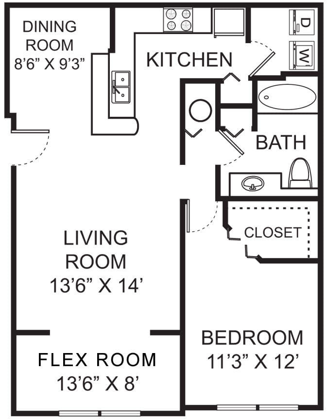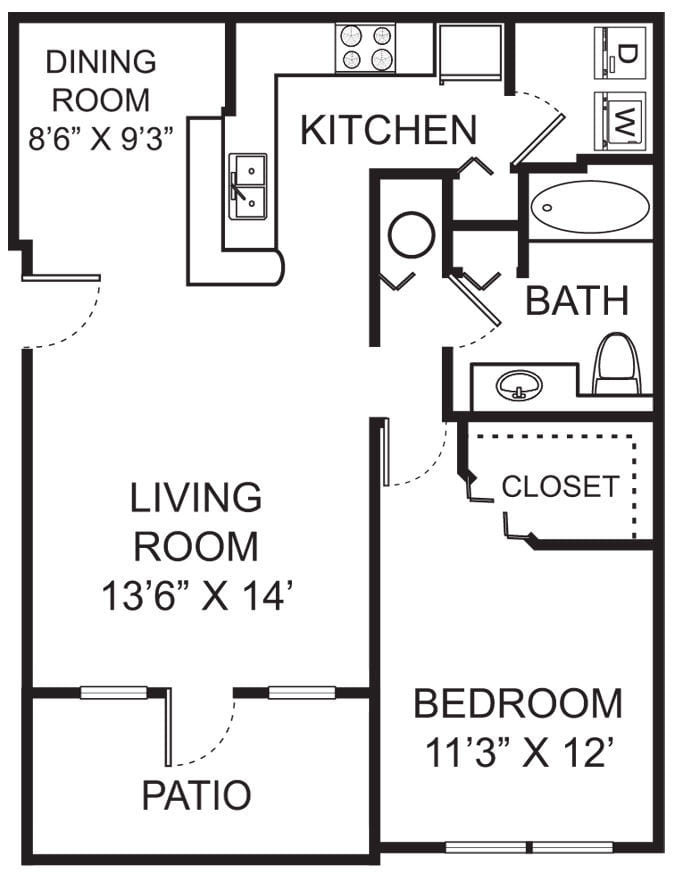 Modelo de apartamento: A1Desde $1,9231 Dormitorio, 1 Baño, 904 sq ftDisponible Ahora![]()