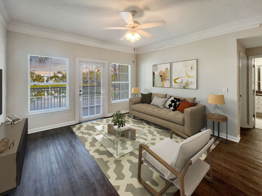 August 23, 2015Feels like a resort! I look forward to coming home from work and relaxing at home in my apartment. The attention to detail of each apartment is amazing. The crown moulding and painted walls add a sophistication I haven't had in previous apartments. The entire community is surrounded by palm trees, lakes and well manicured grounds. The pool is located right outside of the fitness center and if I really want to get active, there are sand volley ball and tennis courts directly across from the pool. ...The staff is wonderful- there are always community activities available including Food Truck invasions, group art events, and pizza nights! There's so much to do without leaving the property. But if you do leave, you'll realize that the community is in the perfect location because we're located within walking distance of a nature preserve, a few miles from major shopping and entertainment in West Palm Beach. I love the fact that we're located in a quiet area in town but we're close enough to connect to almost everything if we need it!Leer MásReseña de Apartments.com