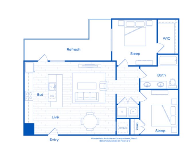 2 Dormitorios, 2 Baños, 1072 pies²Detalles de Diponibilidad