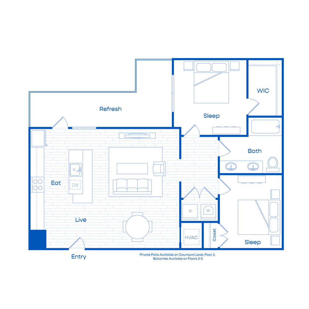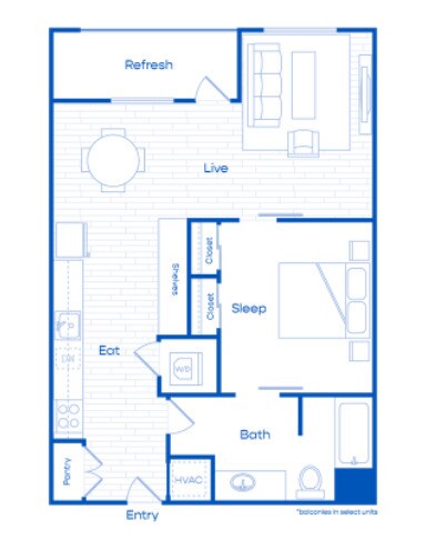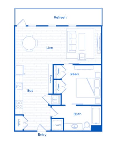 Glean - Plano 1 Unidad de apartamento: 312Modelo de apartamento: GleanLlame para Precios1 Dormitorio, 1 Baño, 688 sq ftDisponible AhoraDominic