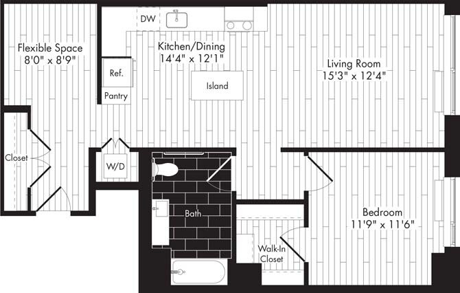 Estudio, 1 Baño, 853 pies²Galería del Modelo