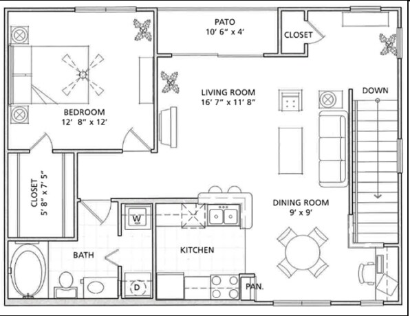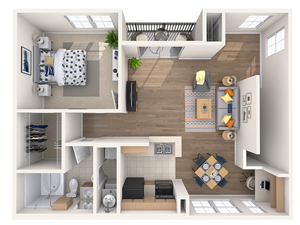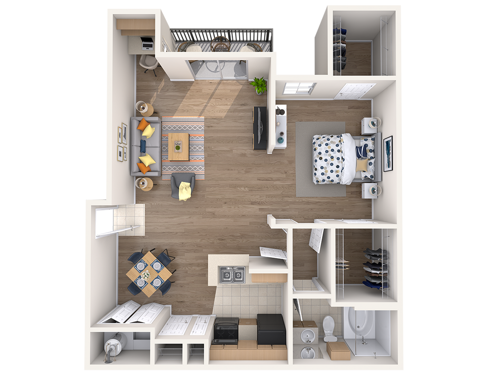 Estudio, 1 Baño, 592 pies²El más grandeEsta opción tiene las unidades más grandes para este modeloGalería del Modelo