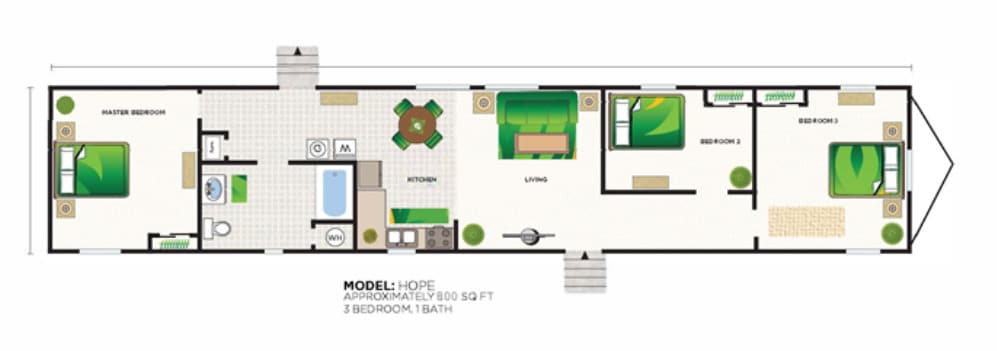 3 Dormitorios, 2 Baños, 1152 pies²Galería del Modelo