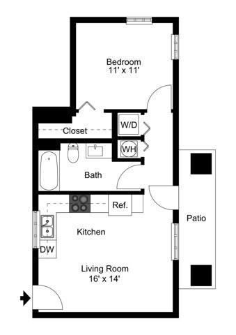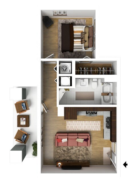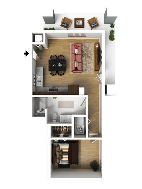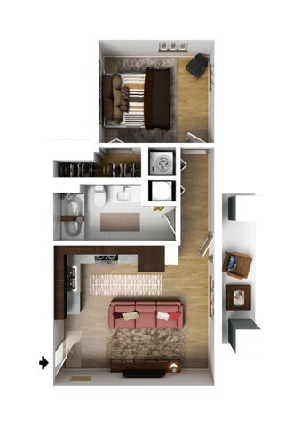 1 Dormitorio, 1 Baño, 684 pies²El más grandeEsta opción tiene las unidades más grandes para este modeloGalería del Modelo