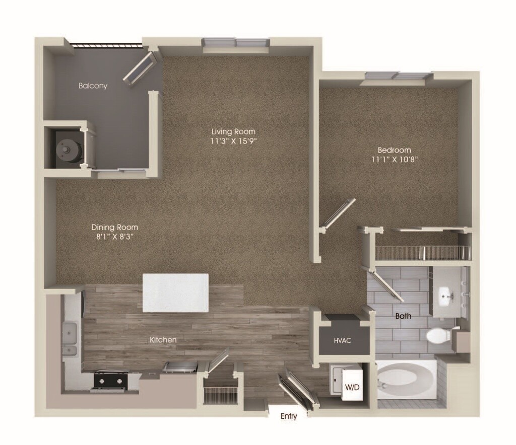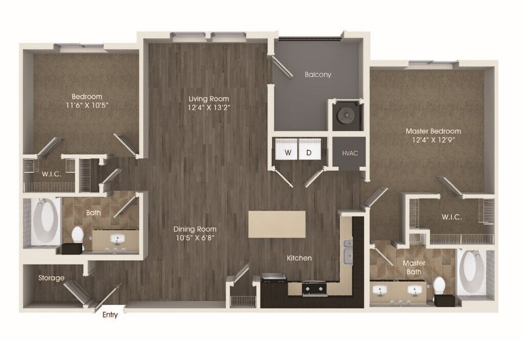 Modelo de apartamento: A5Desde $2,8151 Dormitorio, 1 Baño, 839 sq ftDisponible Ahora![]()