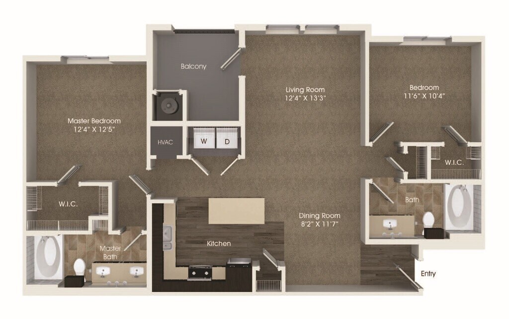 Modelo de apartamento: A2aDesde $2,7401 Dormitorio, 1 Baño, 820 sq ftDisponible Ahora![]()