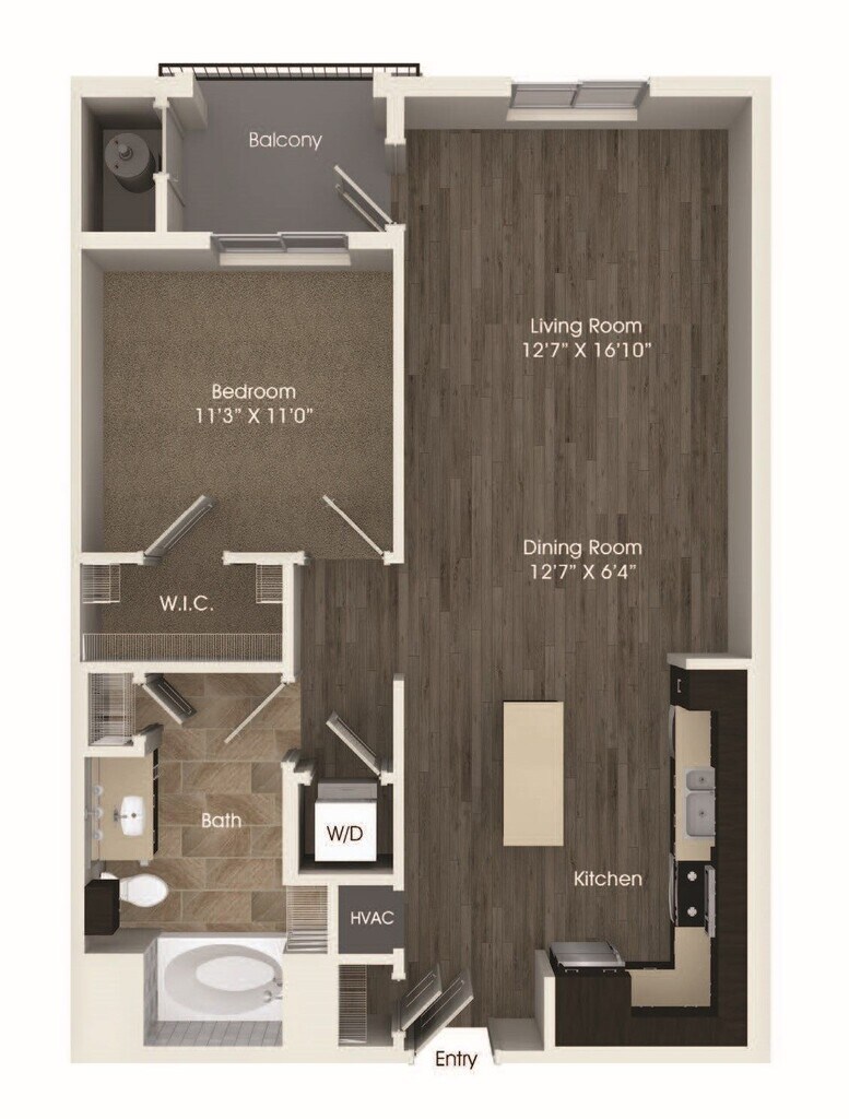 1 Dormitorio, 1 Baño, 783 pies²Disponible AhoraGalería del Modelo