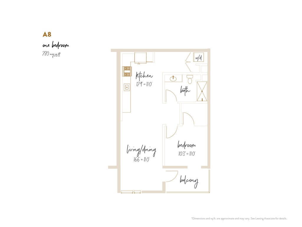 A8 - Plano 1 Unidad de apartamento: 607Modelo de apartamento: A8$3,7631 Dormitorio, 1 Baño, 780 sq ftDisponible AhoraPlano: A12
